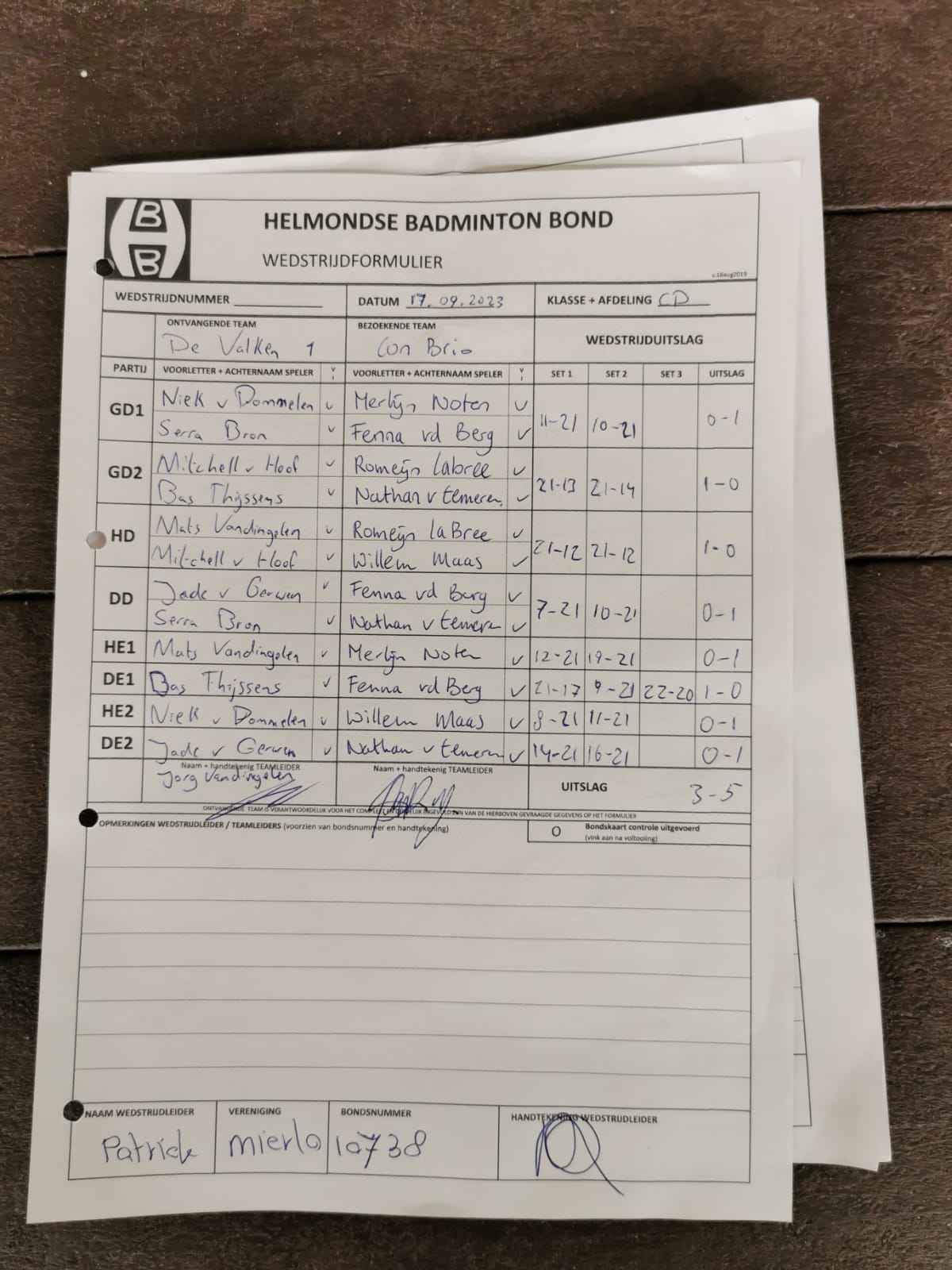 | 09:30 | zo. 17-09-2023 | De Valken 1 | - | Con Brio 1 | 10 | 3 - 5 | ||