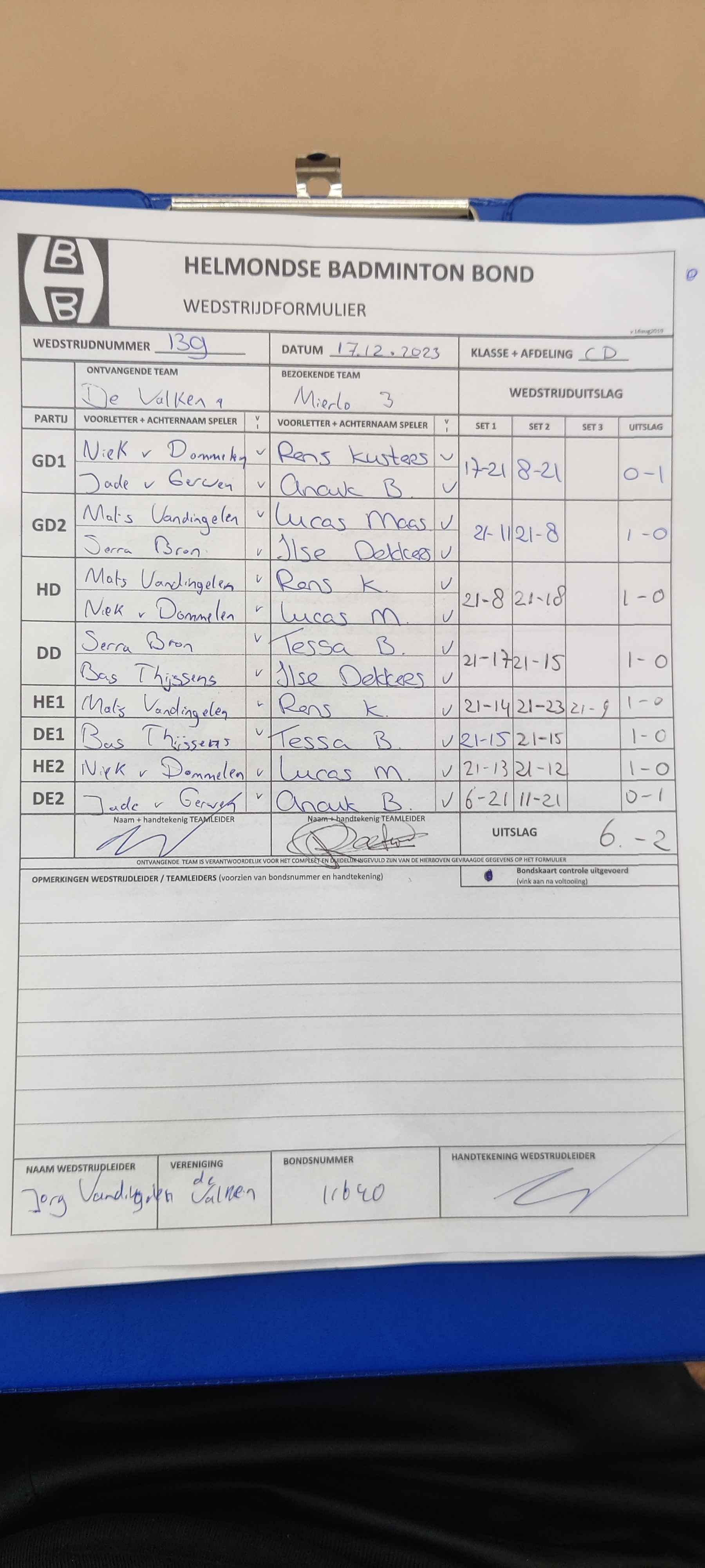 | 09:30 | zo. 17-12-2023 | De Valken 1 | - | Mierlo 3 | 15 | 6 - 2 | ||