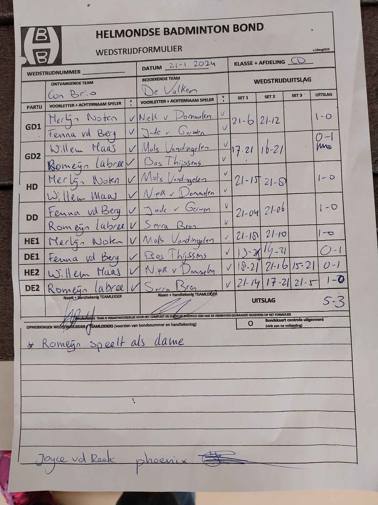| 09:30 | zo. 21-01-2024 | Con Brio 1 | - | De Valken 1 | 14 | 5 - 3 | ||