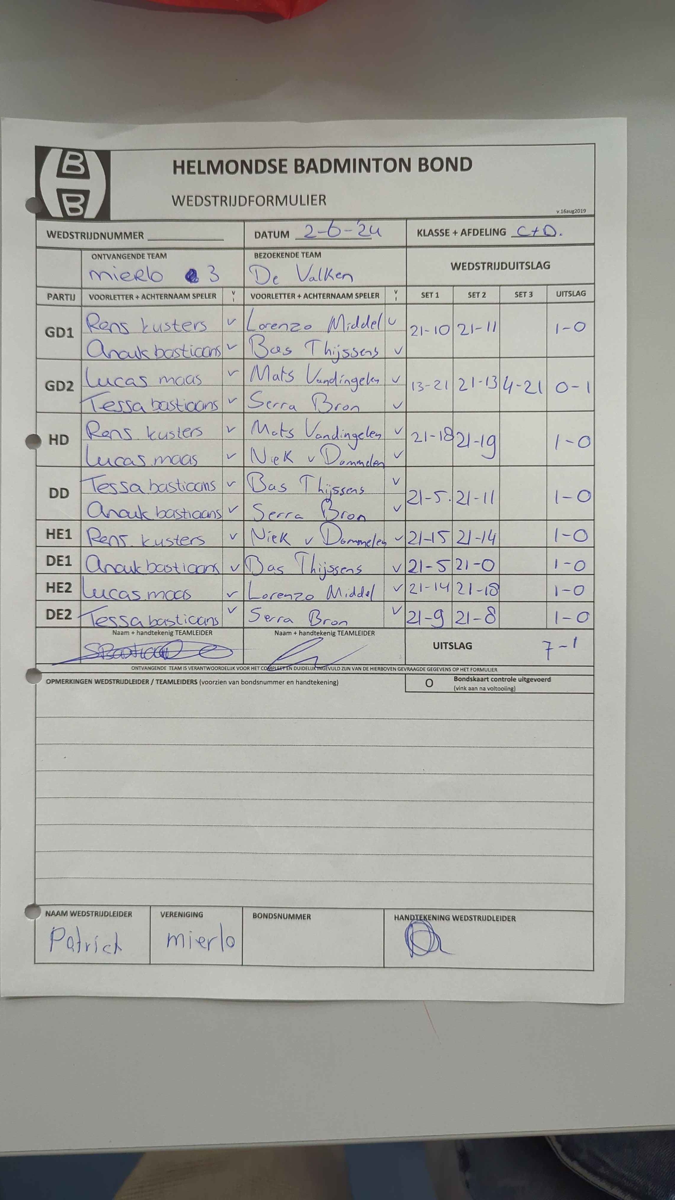 | 09:30 | zo. 02-06-2024 | Mierlo 3 | - | De Valken 1 | 4 | 7 - 1 |