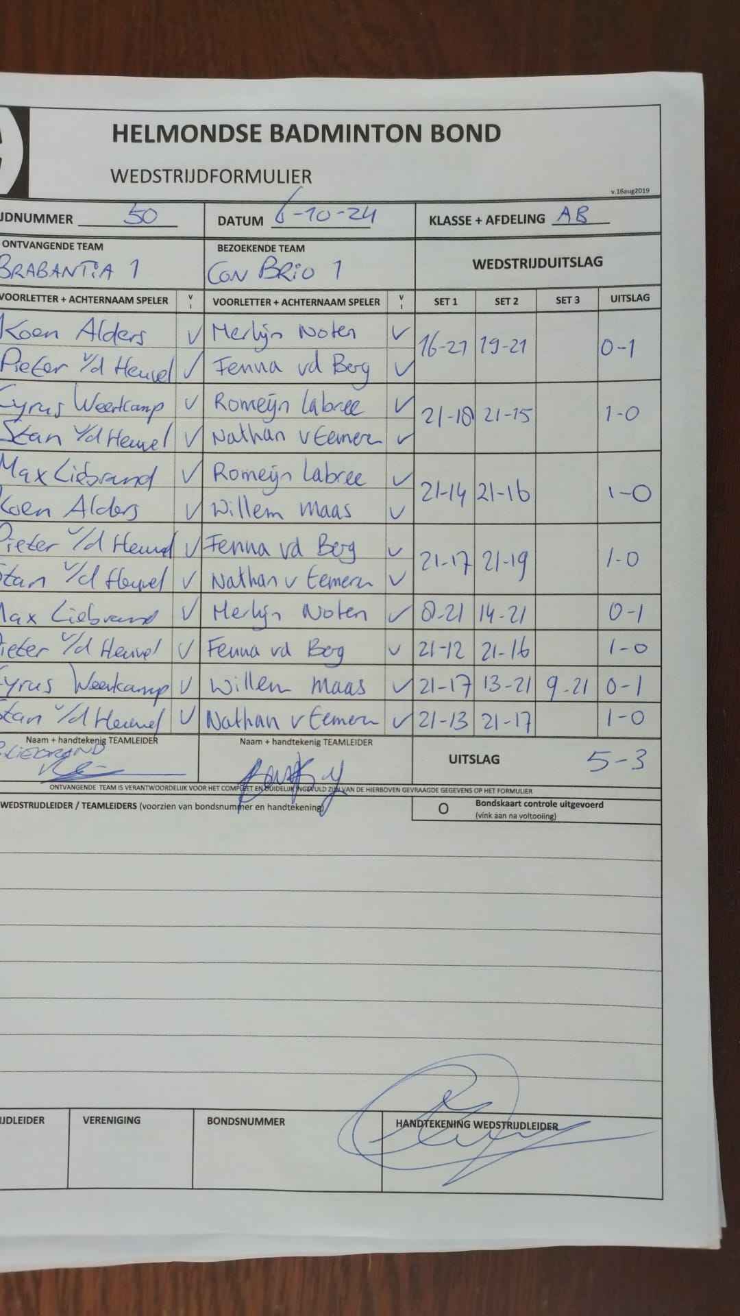 | 12:30 | zo. 06-10-2024 | Brabantia 1 | - | Con Brio 1 | 10 | 5 - 3 | ||