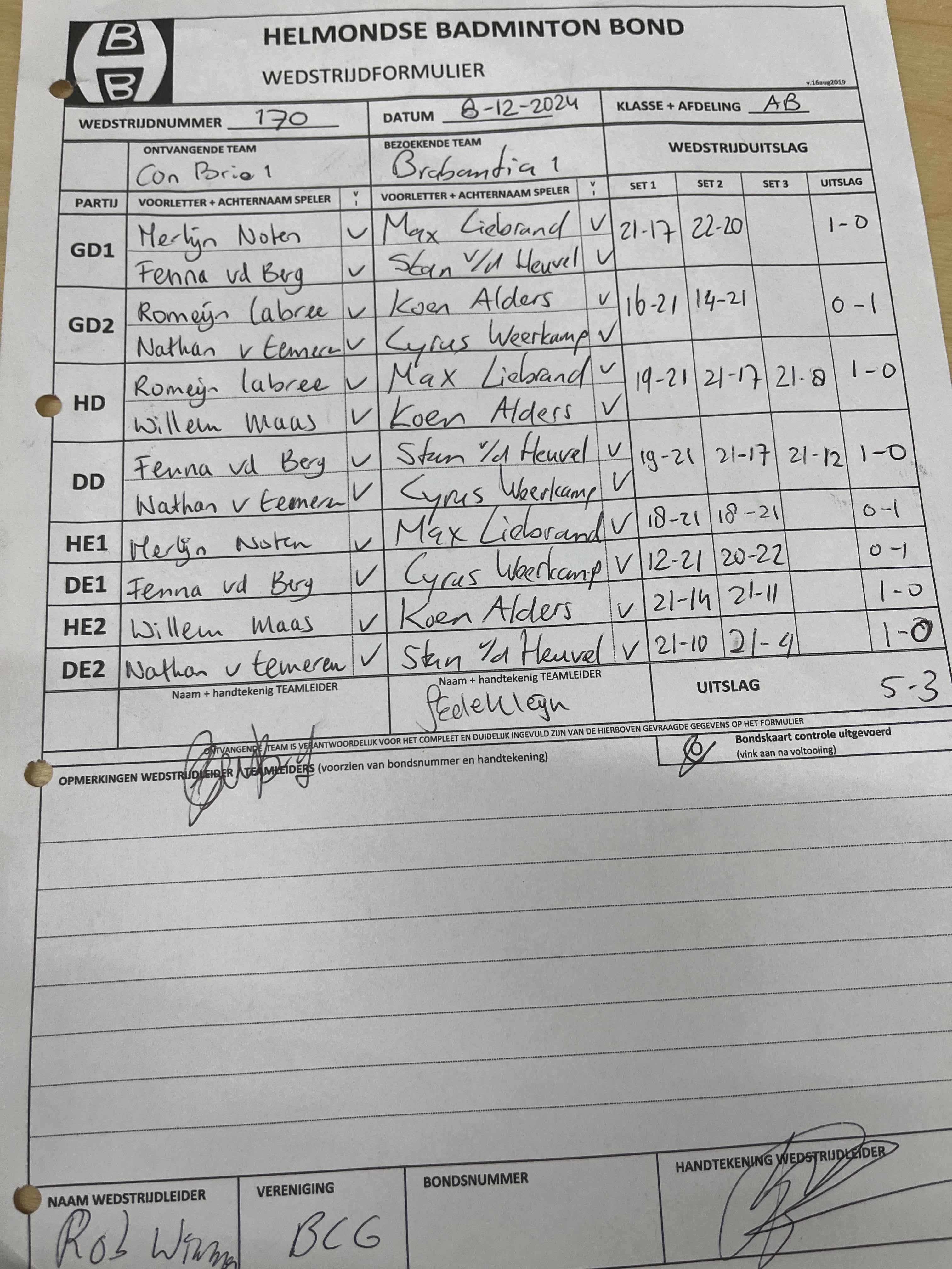 | 09:30 | zo. 01-12-2024 | Gemert 1 | - | Con Brio 1 | 3 | 5 - 3 | ||