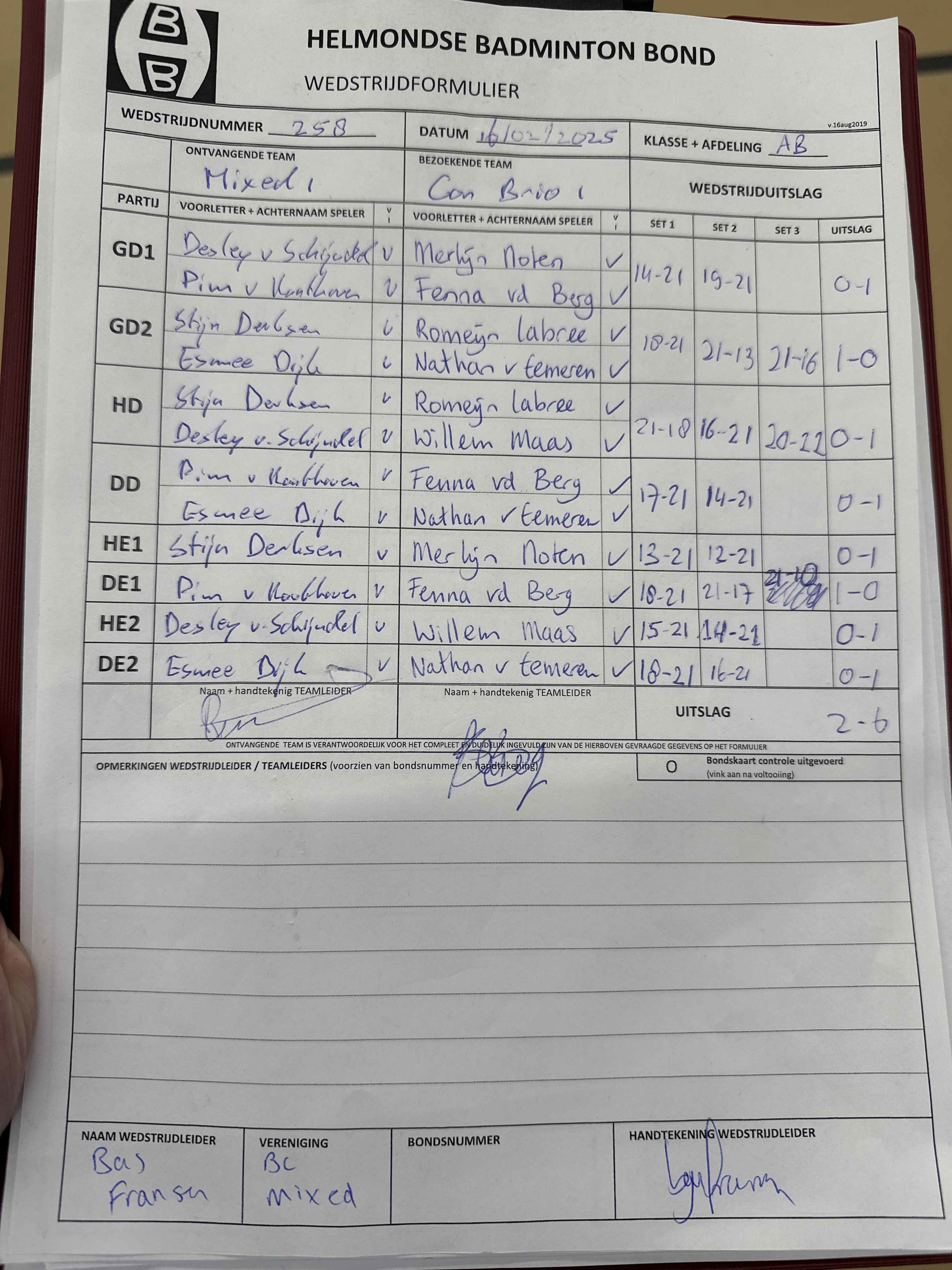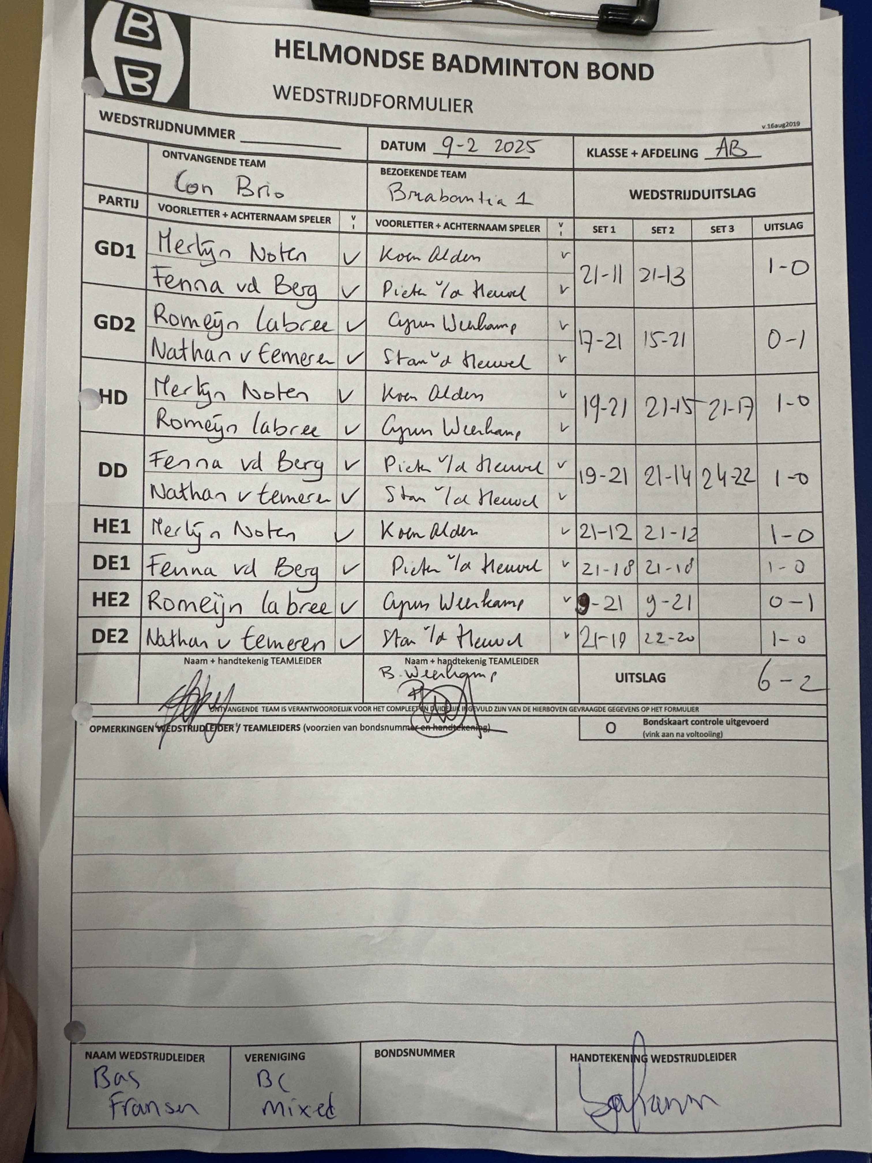 | 09:30 | zo. 16-02-2025 | Mixed 1 | - | Con Brio 1 | 15 | 2 - 6 |