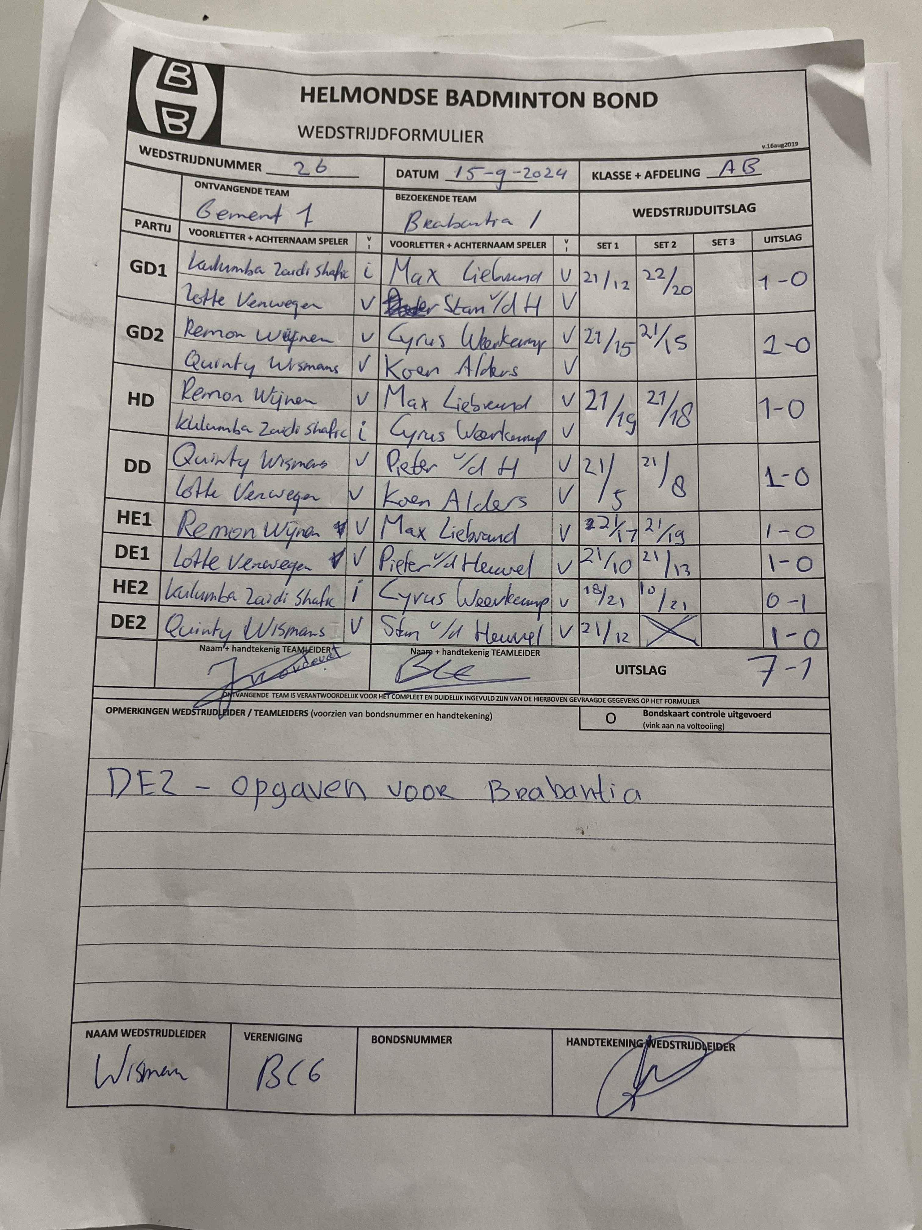 | 09:30 | zo. 15-09-2024 | Gemert 1 | - | Brabantia 1 | 15 | 7 - 1 | ||