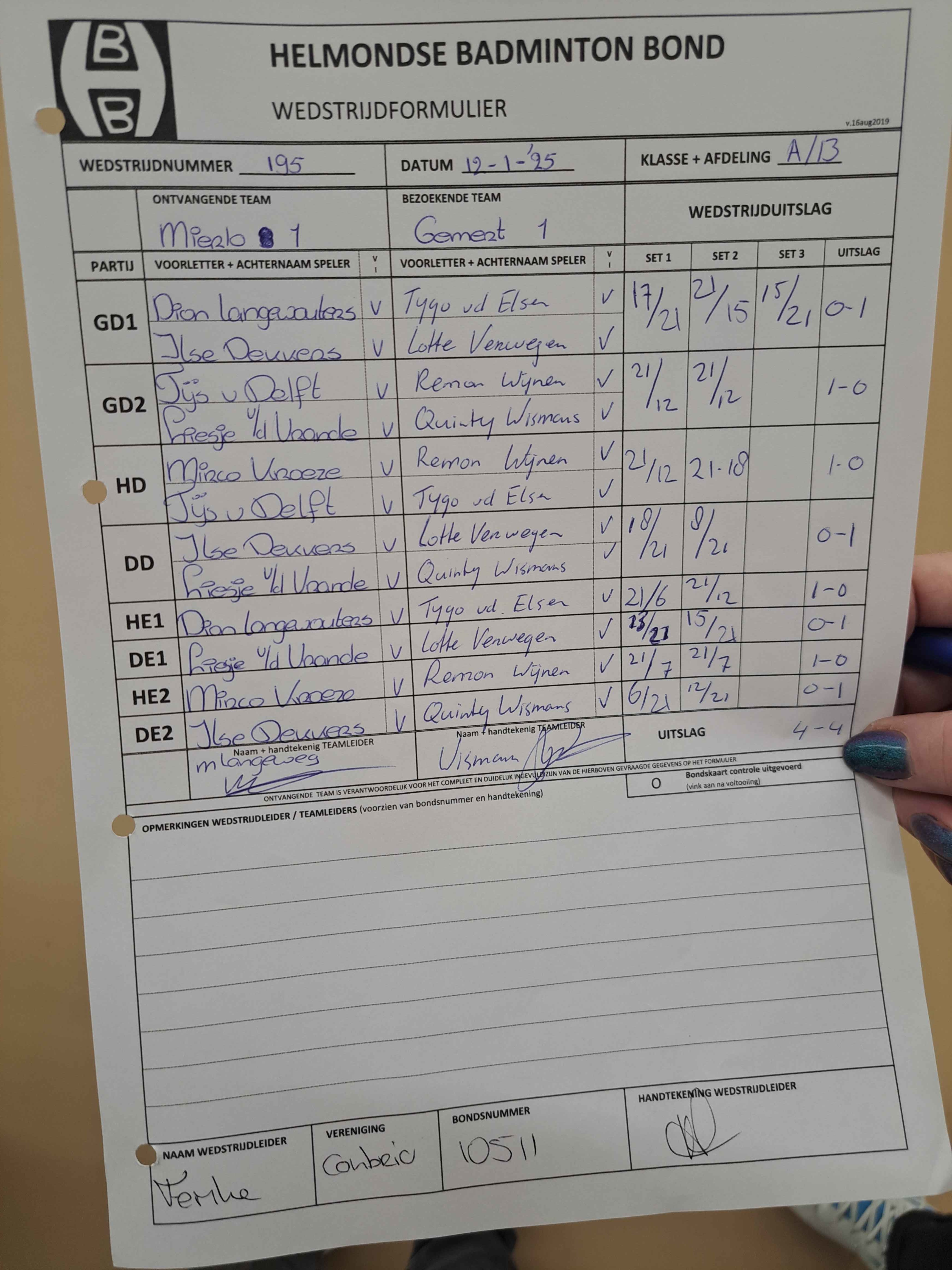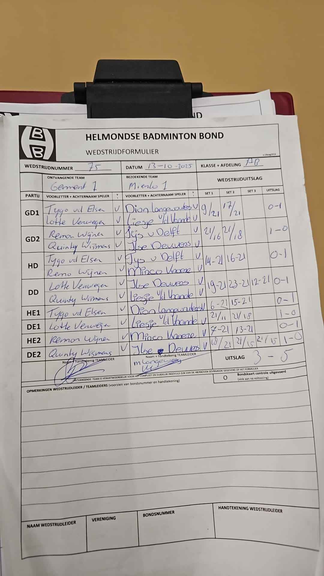 | 09:30 | zo. 17-11-2024 | Gemert 1 | - | Mixed 1 | 1 | 8 - 0 | ||