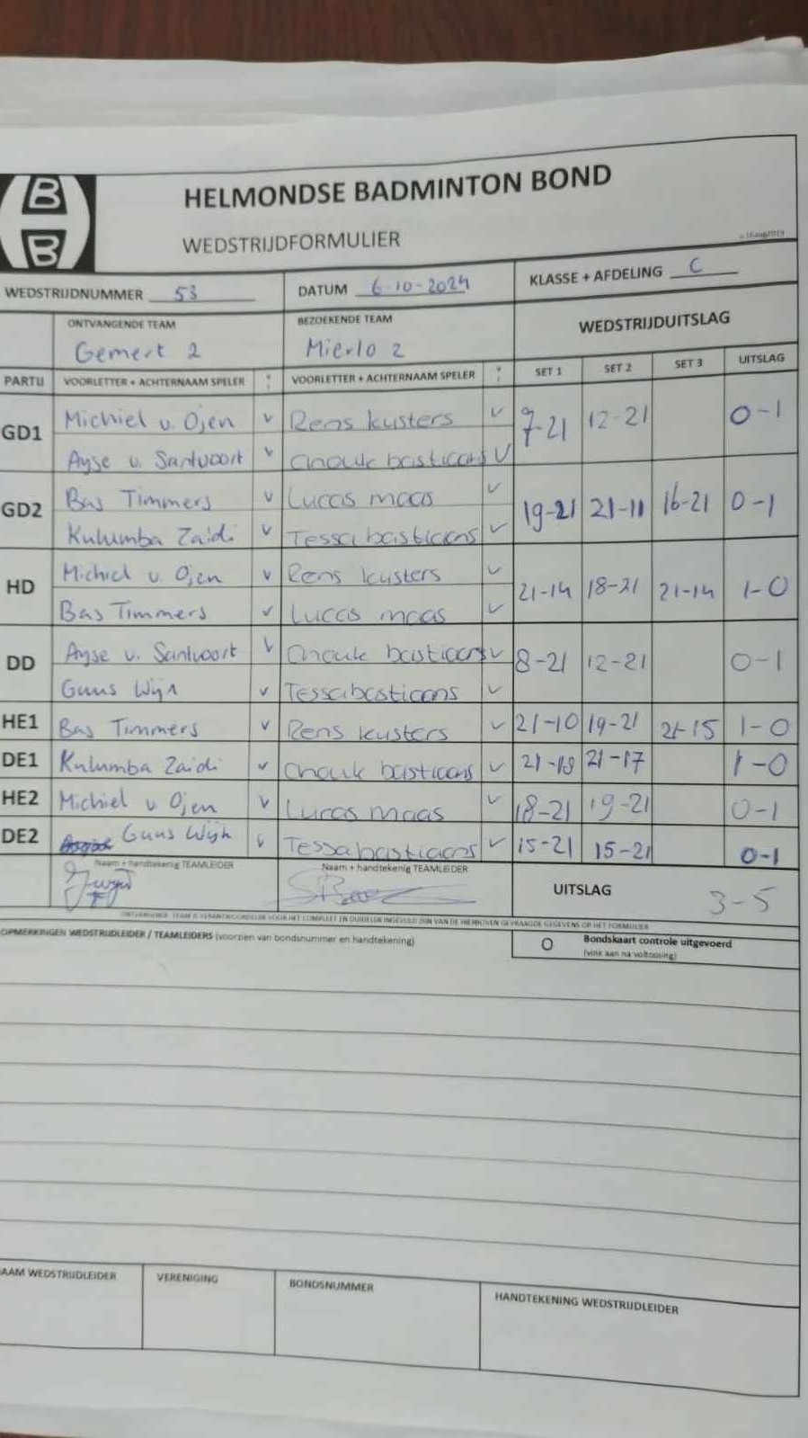 | 09:30 | zo. 13-10-2024 | Mixed 2 | - | Gemert 2 | 4 | 3 - 5 | ||