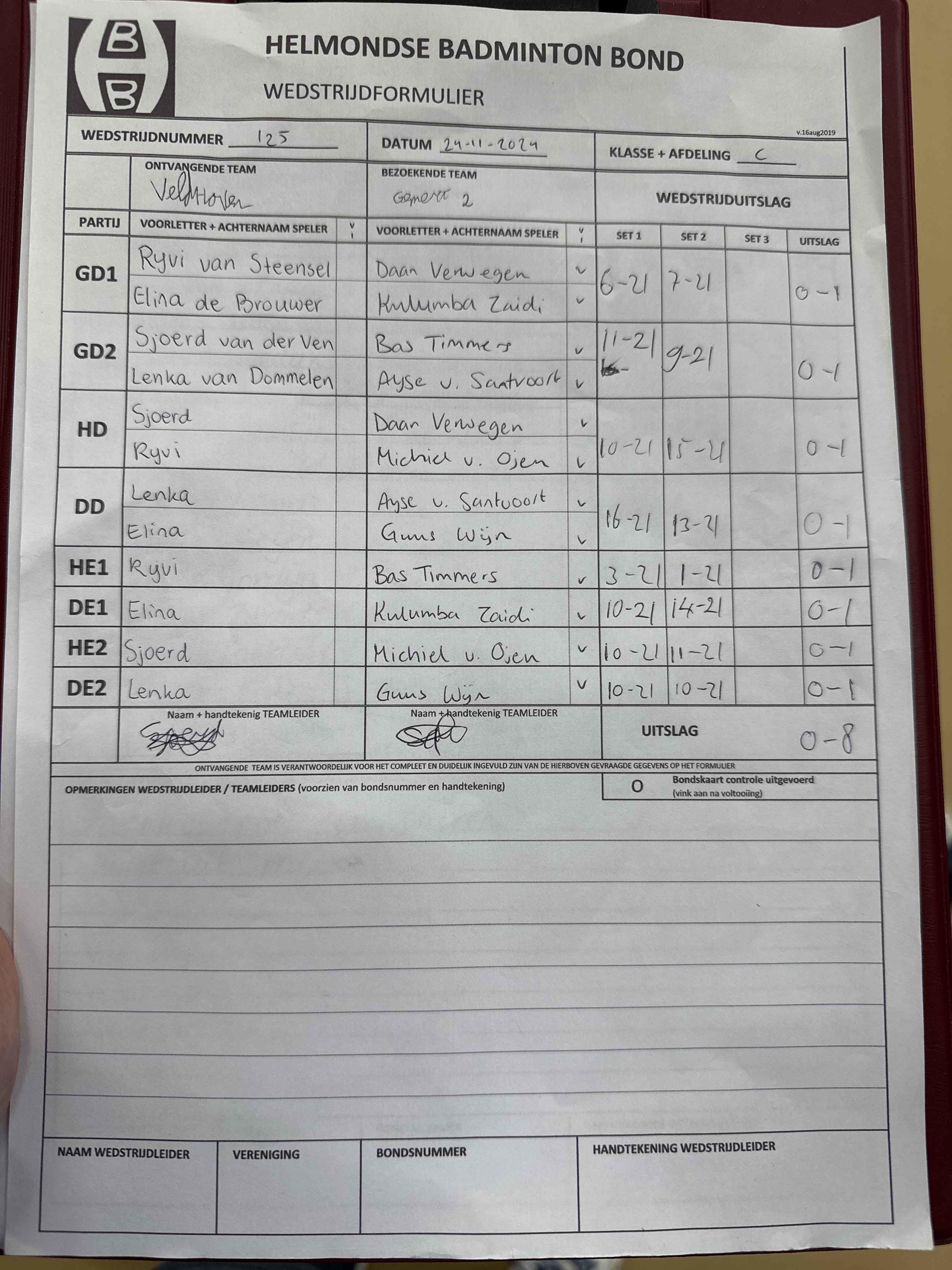 | 09:30 | zo. 17-11-2024 | Phoenix 1 | - | Gemert 2 | 2 | 0 - 8 | ||