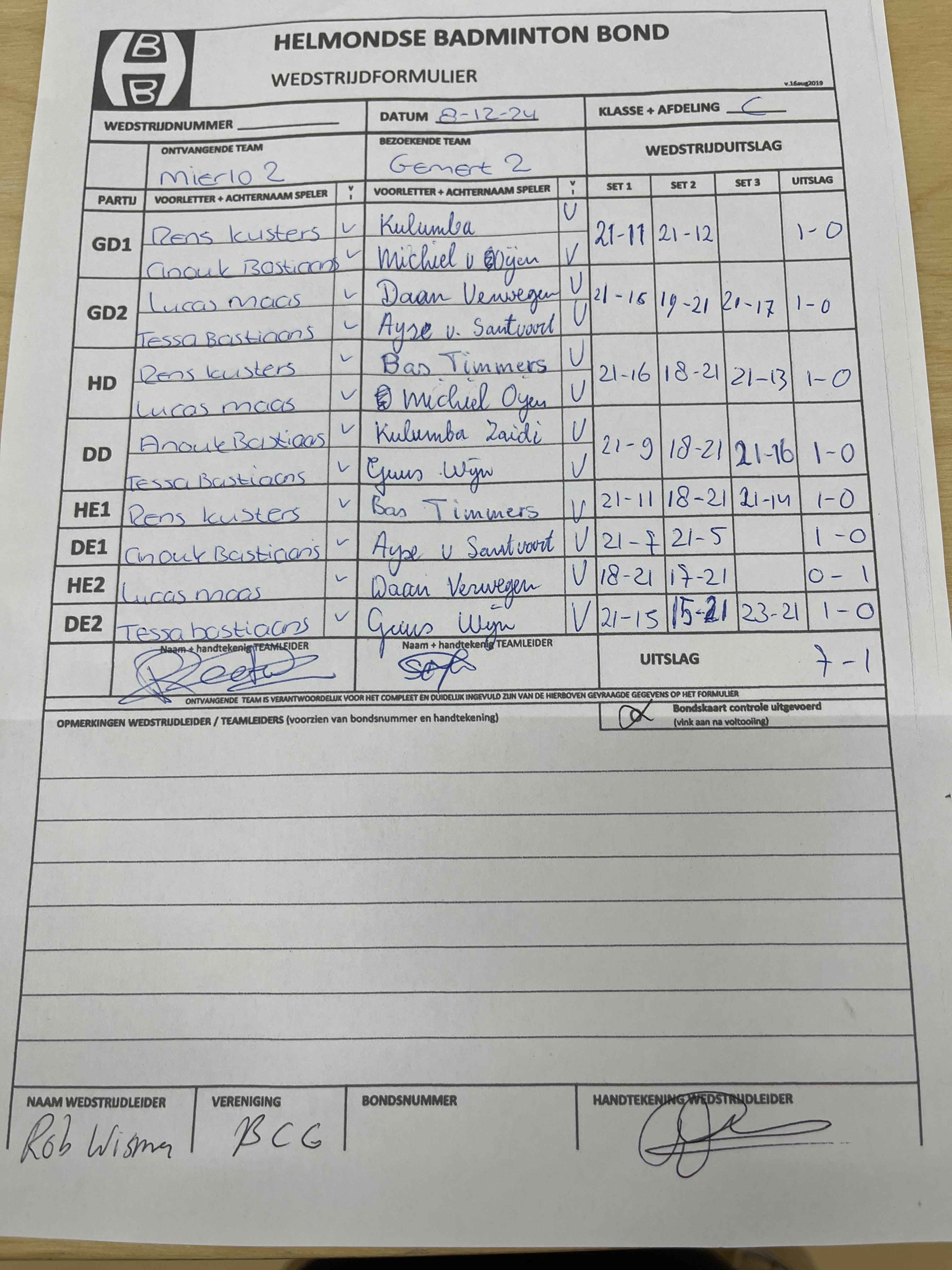 | 09:30 | zo. 12-01-2025 | Gemert 2 | - | Mixed 2 | 14 | 5 - 3 | ||