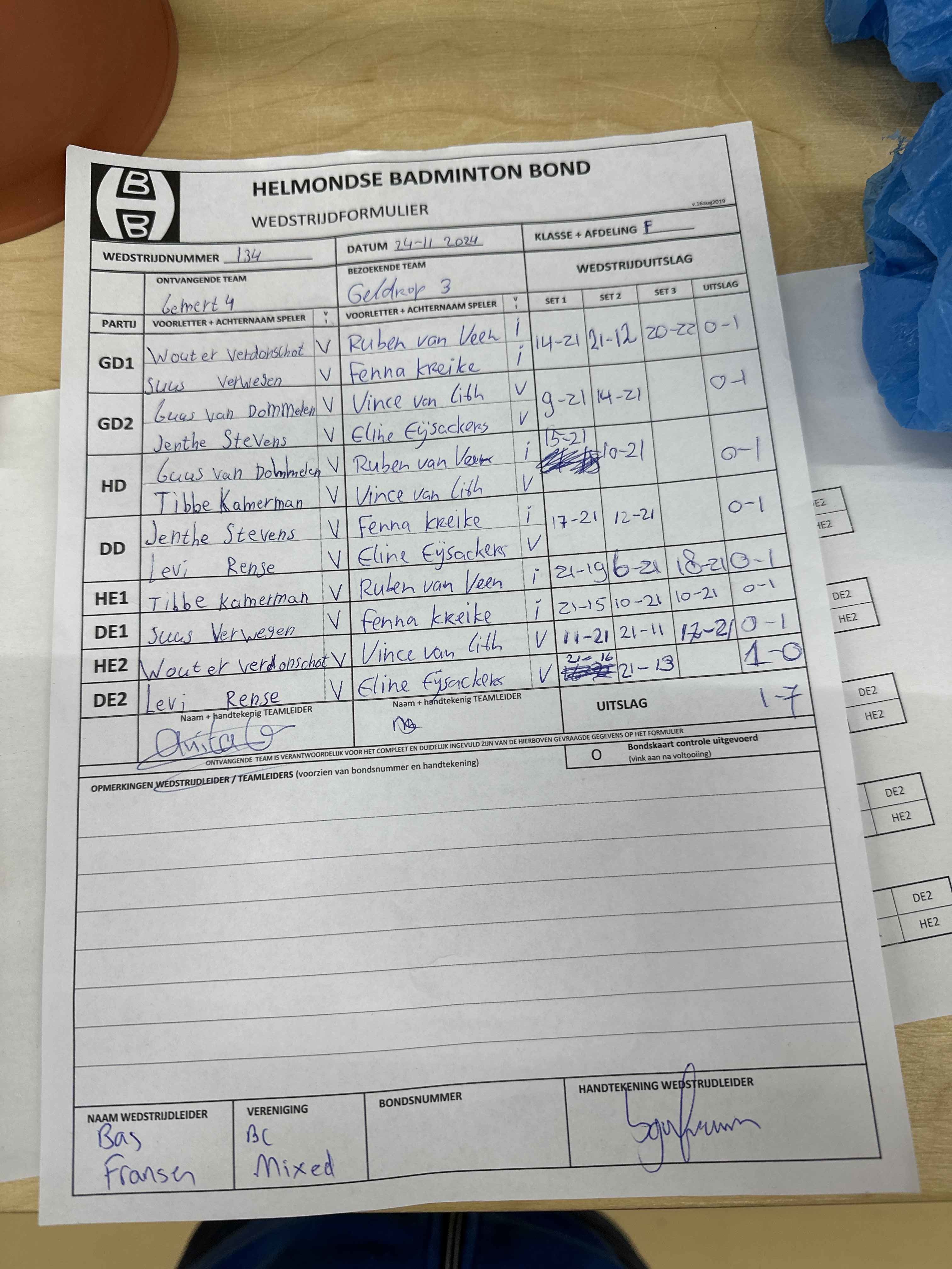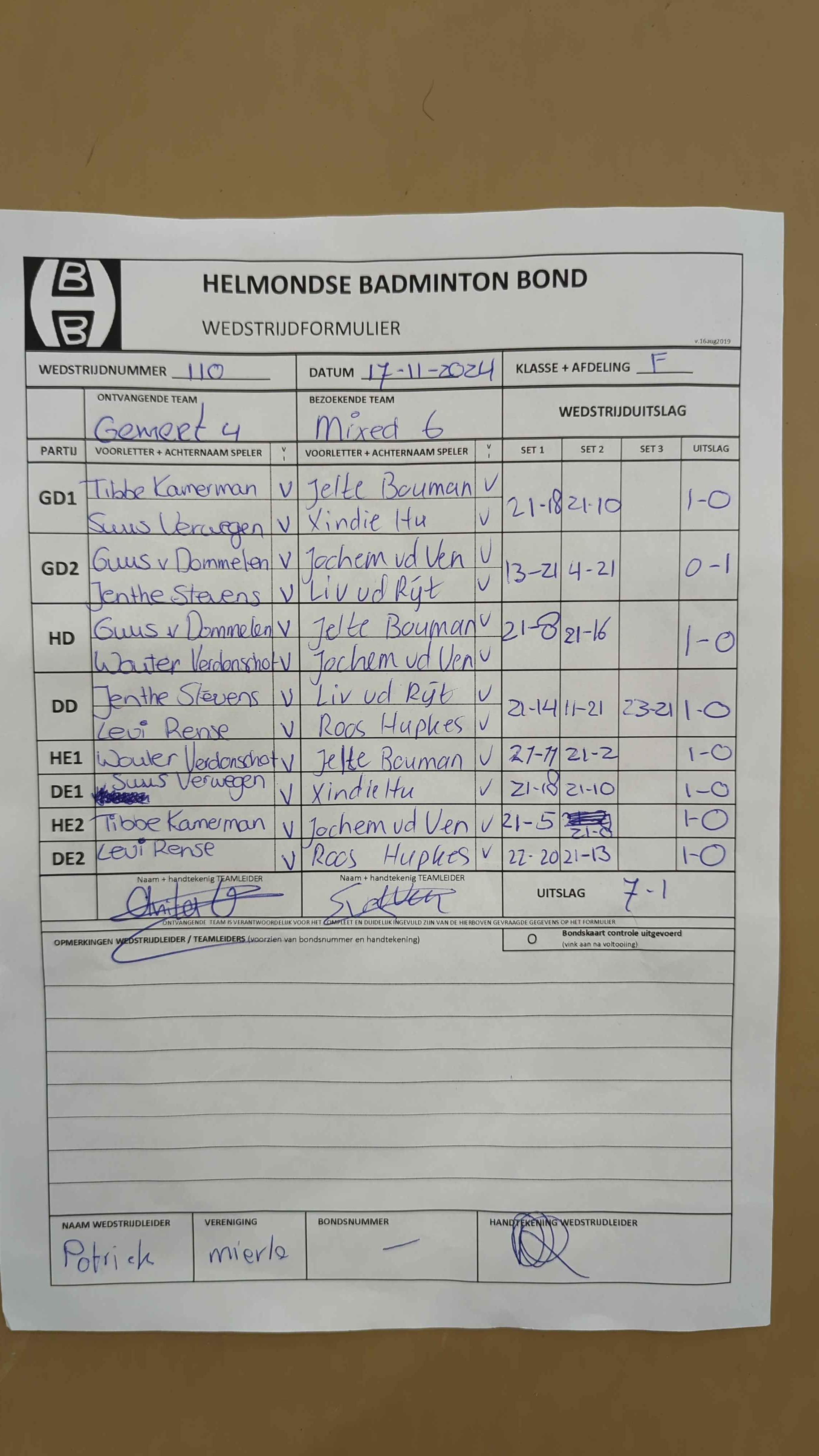 | 12:30 | zo. 17-11-2024 | Gemert 4 | - | Mixed 6 | 2 | 7 - 1 | ||