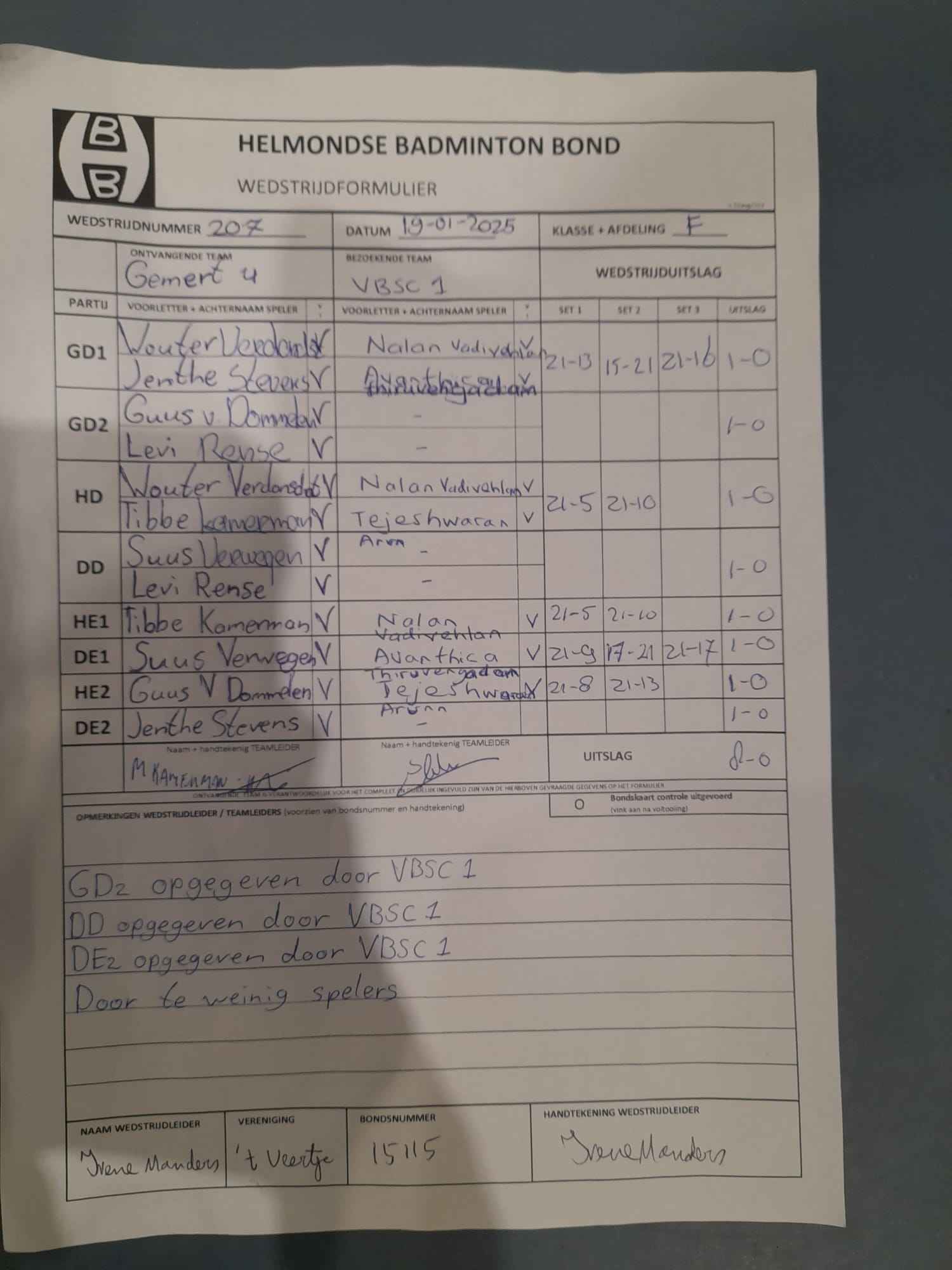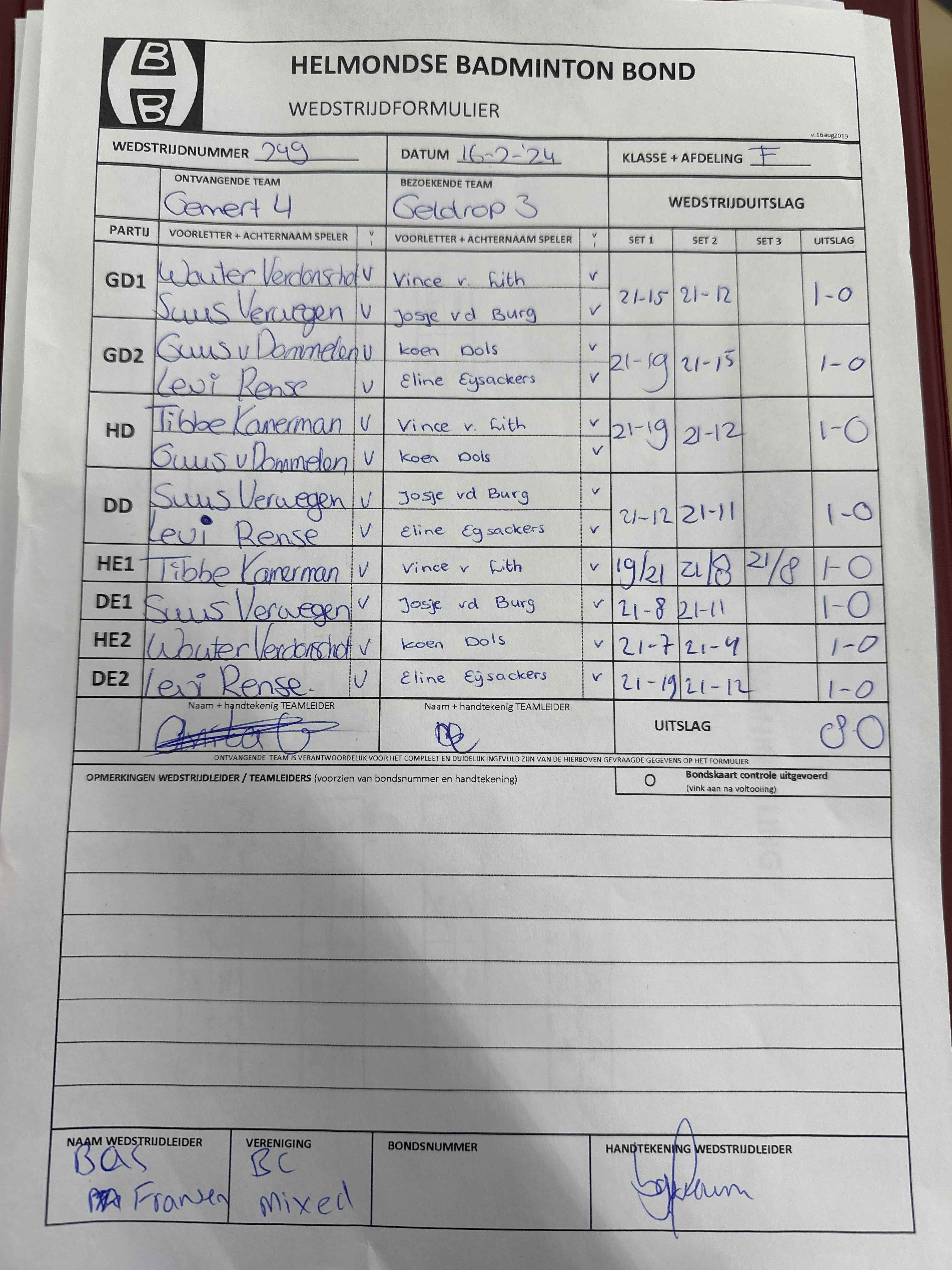 | 09:30 | zo. 09-02-2025 | Mixed 6 | - | Gemert 4 | 2 | 3 - 5 | ||