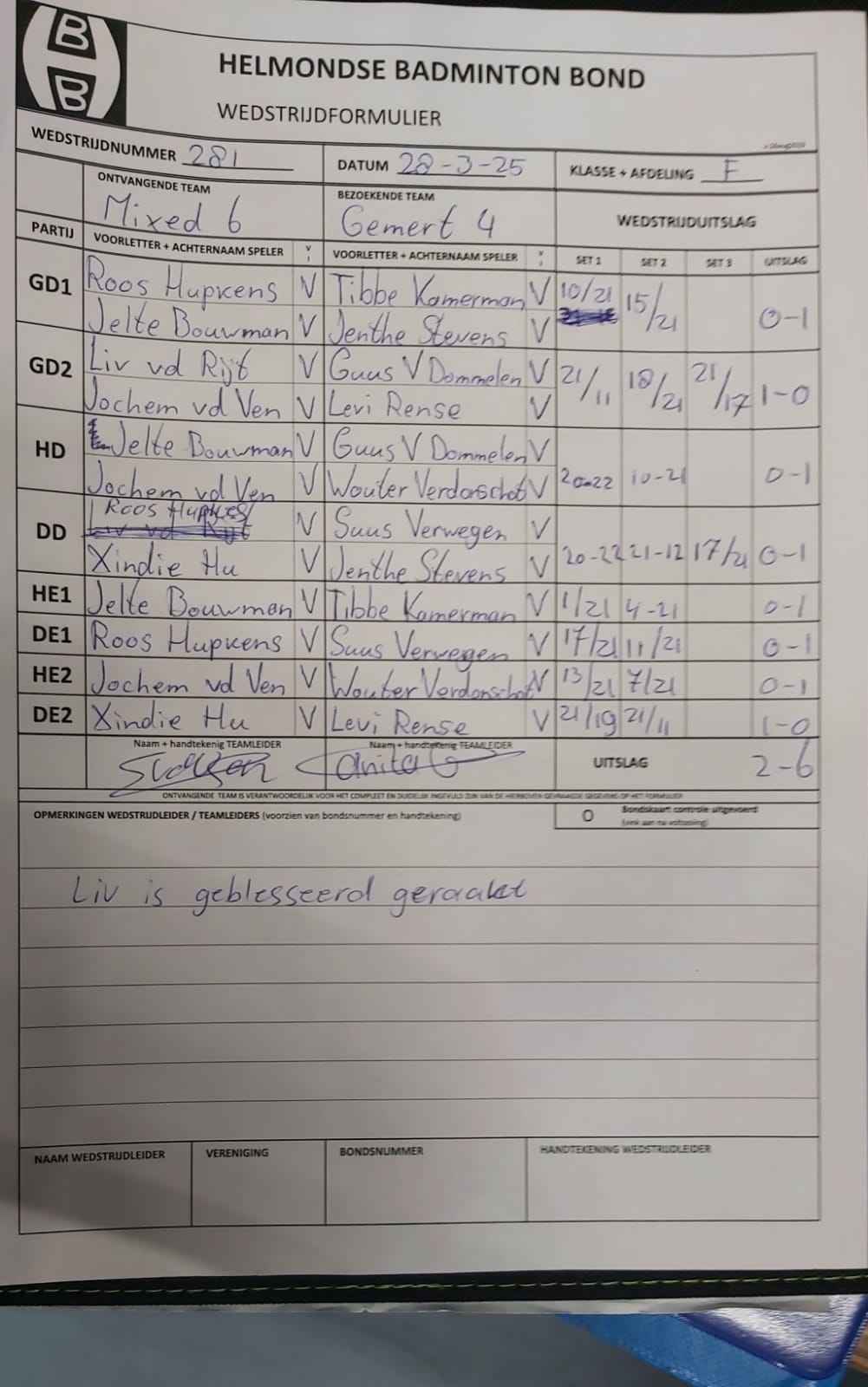 | 09:30 | zo. 06-04-2025 | Mixed 6 | - | Gemert 4 | 2 | 2 - 6 |