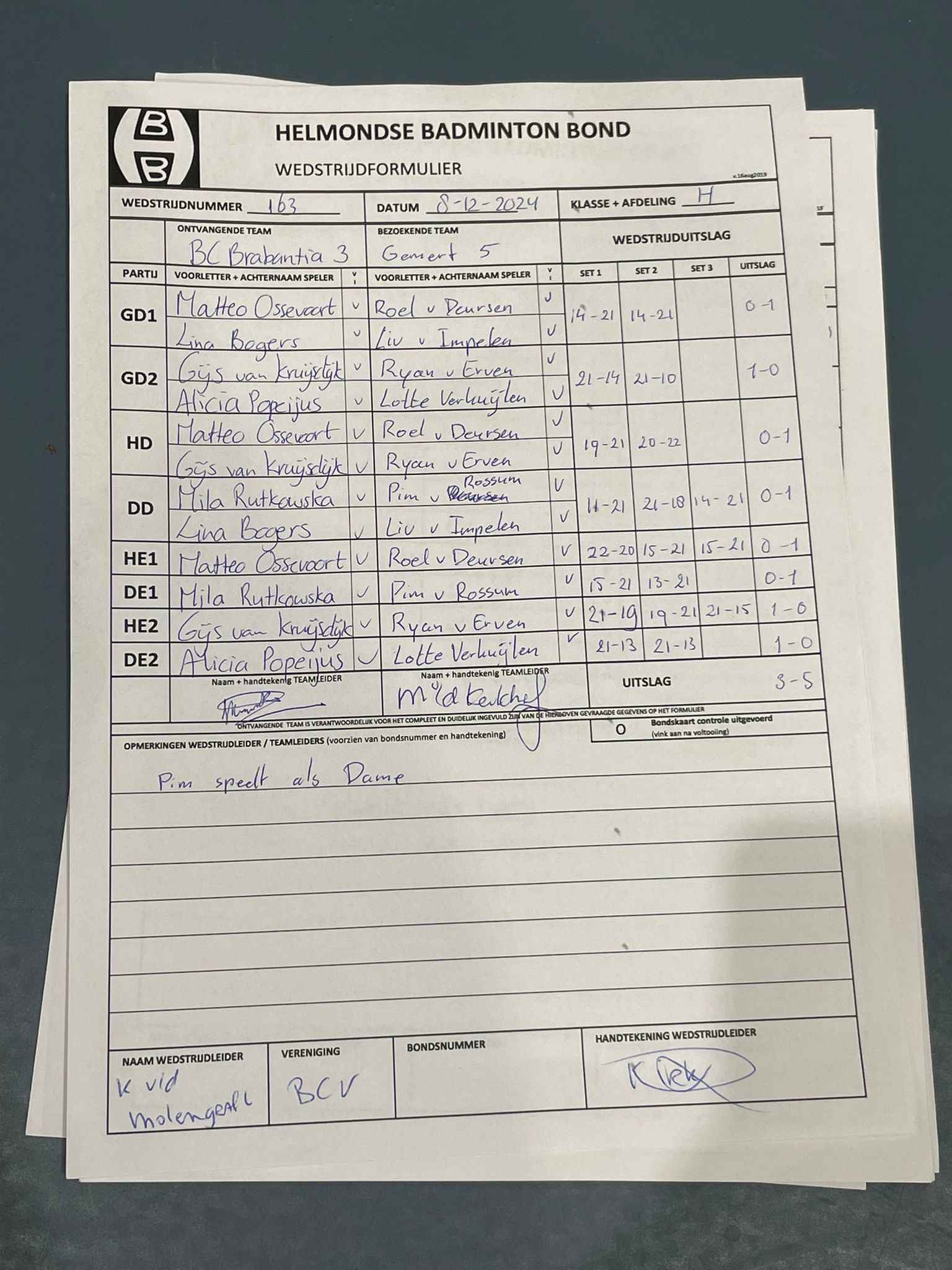| 09:30 | zo. 08-12-2024 | Brabantia 3 | - | Gemert 5 | 5 | 3 - 5 | ||