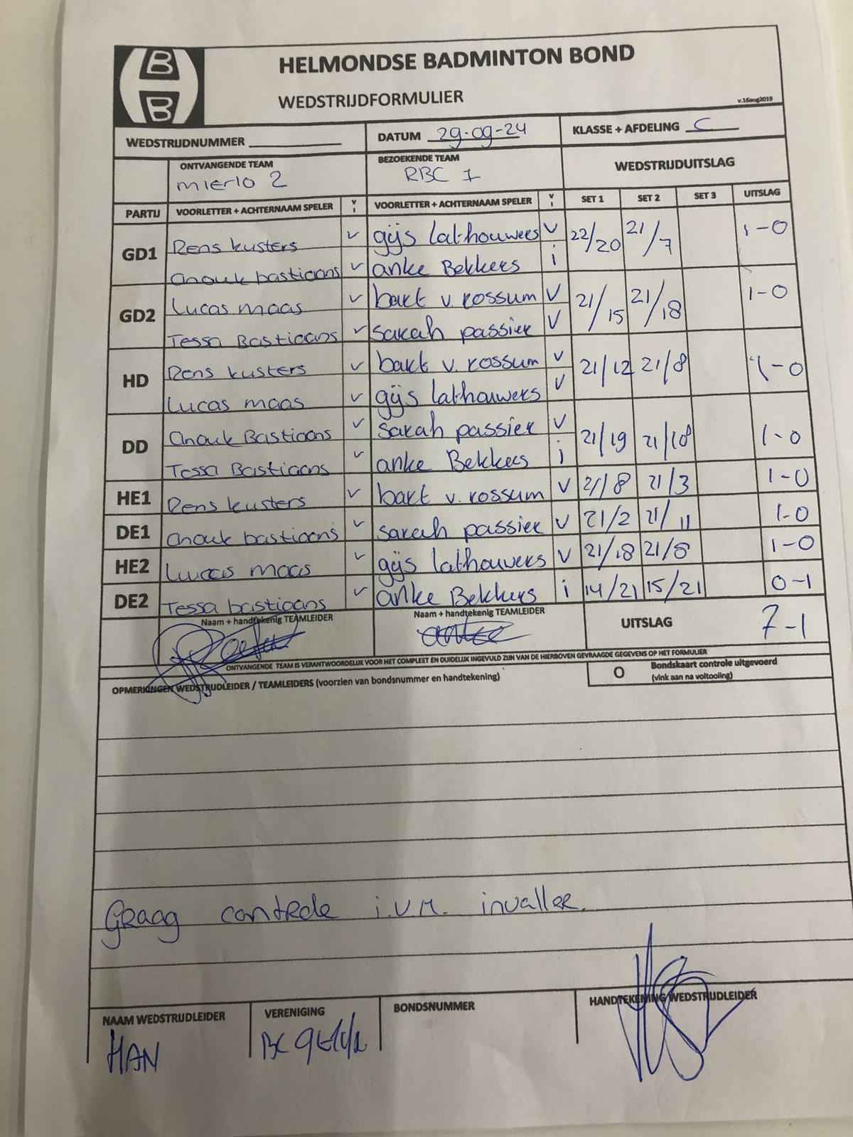 | 09:30 | zo. 29-09-2024 | Mierlo 2 | - | RBC 1 | 12 | 8 - 0 | ||