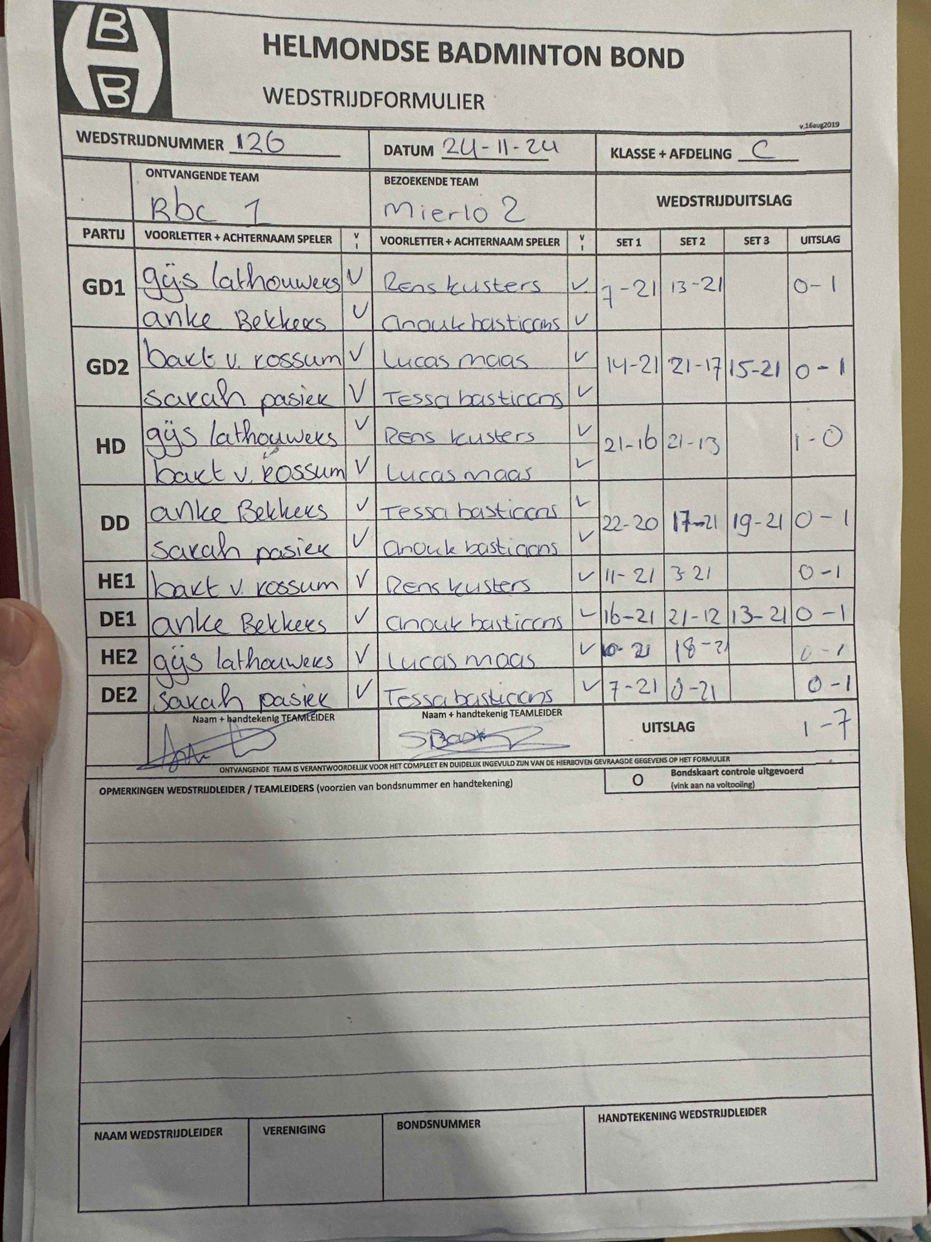 | 09:30 | zo. 24-11-2024 | RBC 1 | - | Mierlo 2 | 13 | 1 - 7 | ||
