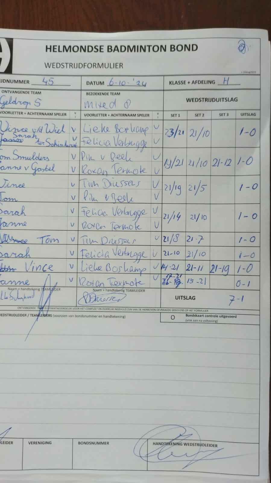 | 12:30 | zo. 06-10-2024 | Geldrop 5 | - | Mixed 8 | 1 | 7 - 1 | ||