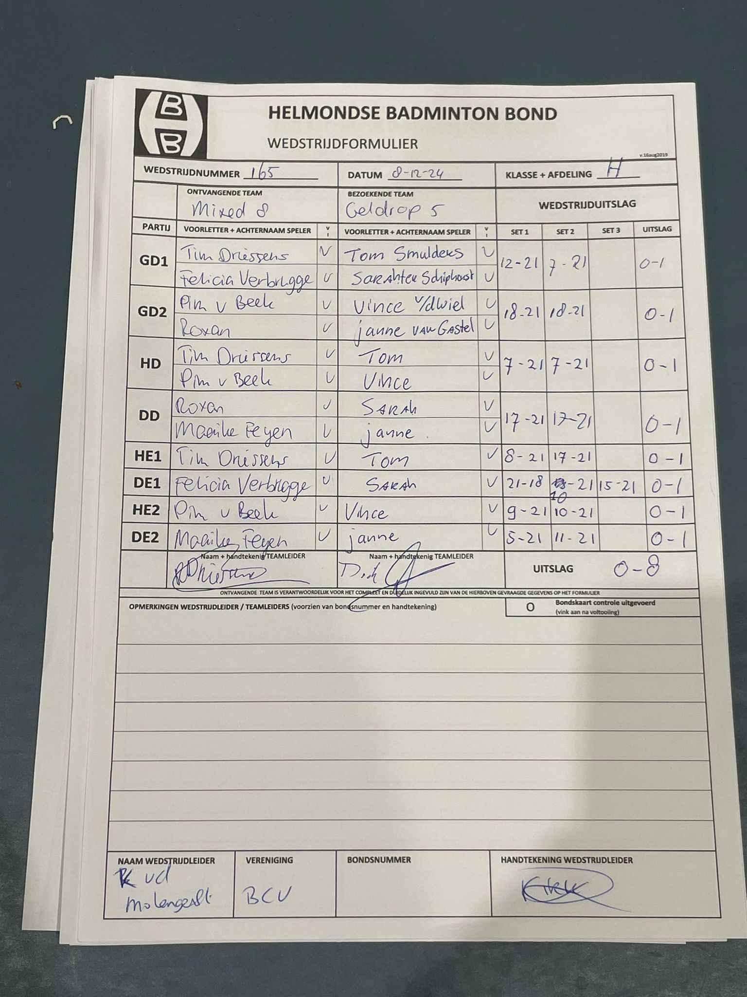 | 09:30 | zo. 08-12-2024 | Mixed 8 | - | Geldrop 5 | 12 | 0 - 8 | ||