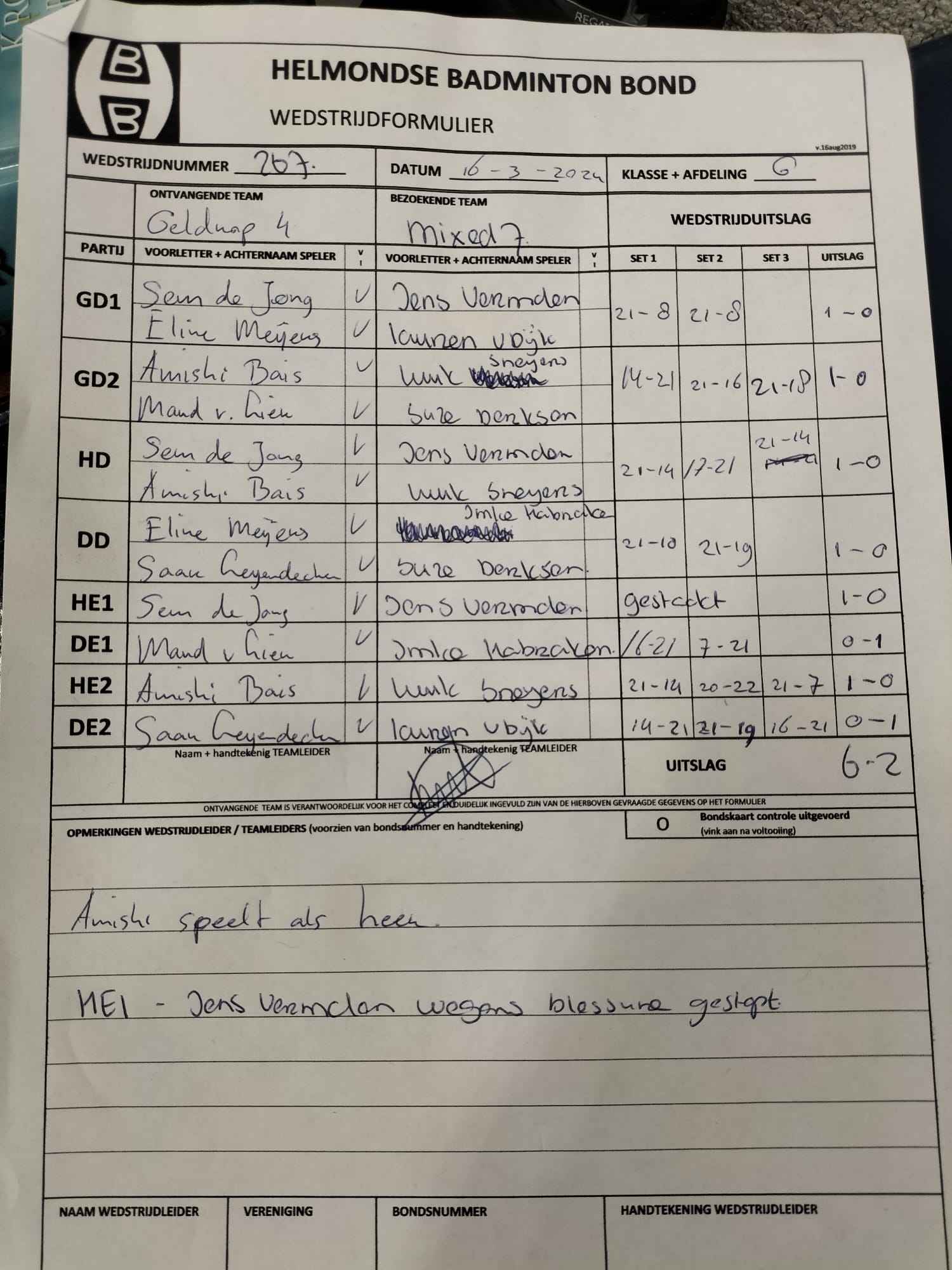 | 09:30 | zo. 16-03-2025 | Geldrop 4 | - | Mixed 7 | 14 | 6 - 2 |
