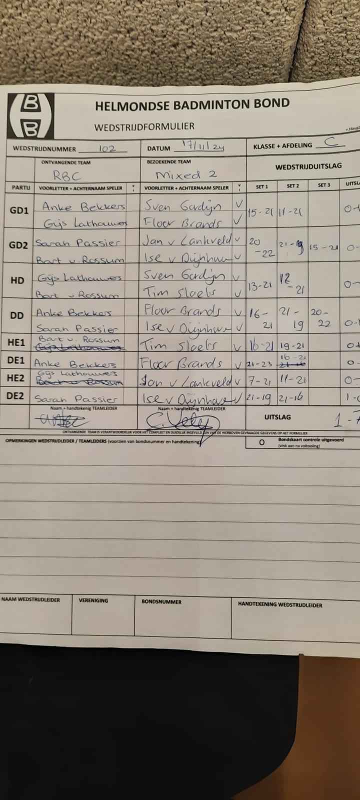 | 09:30 | zo. 17-11-2024 | RBC 1 | - | Mixed 2 | 4 | 1 - 7 | ||
