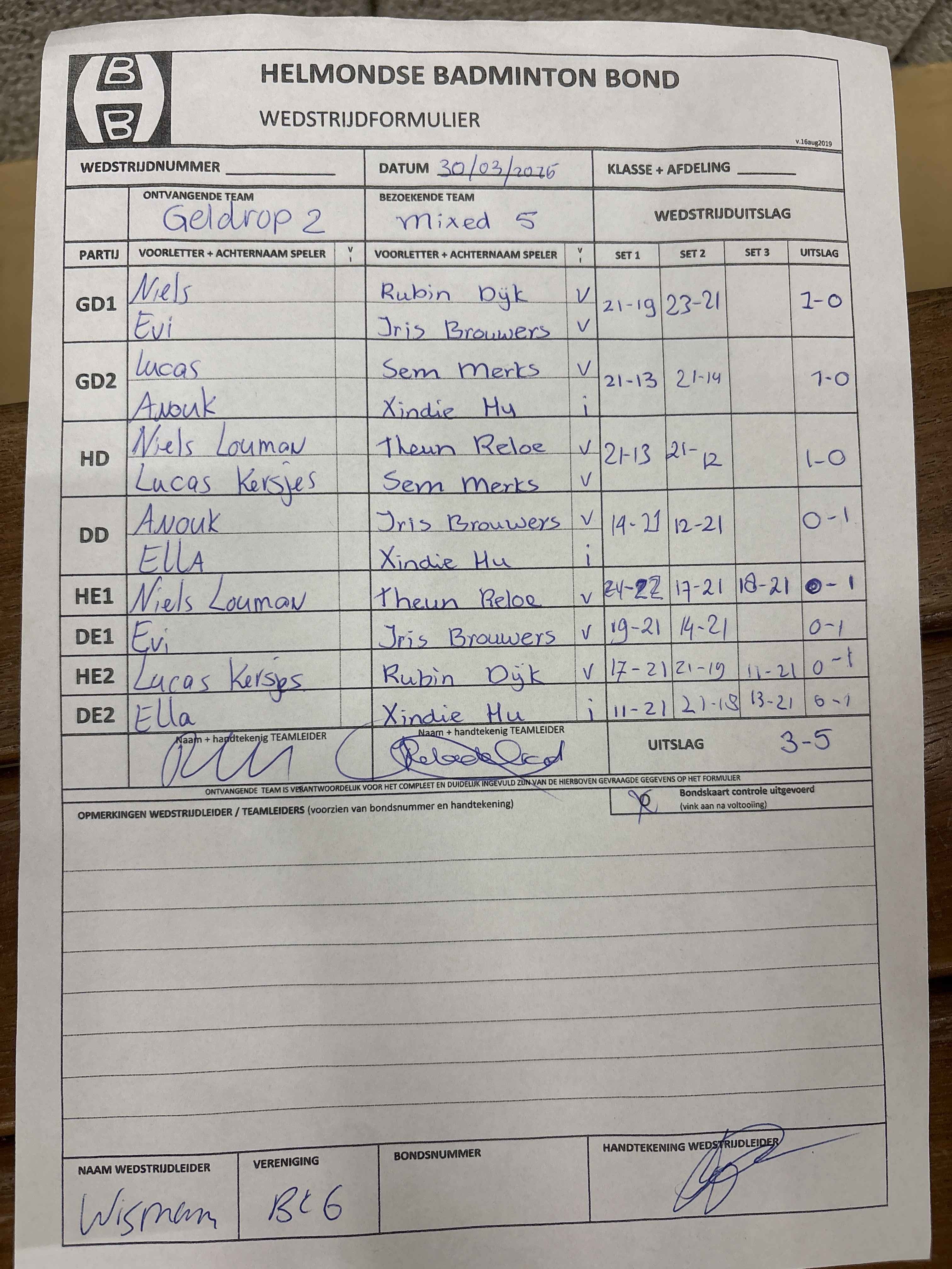 | 09:30 | zo. 30-03-2025 | Geldrop 2 | - | Mixed 5 | 15 | 3 - 5 |