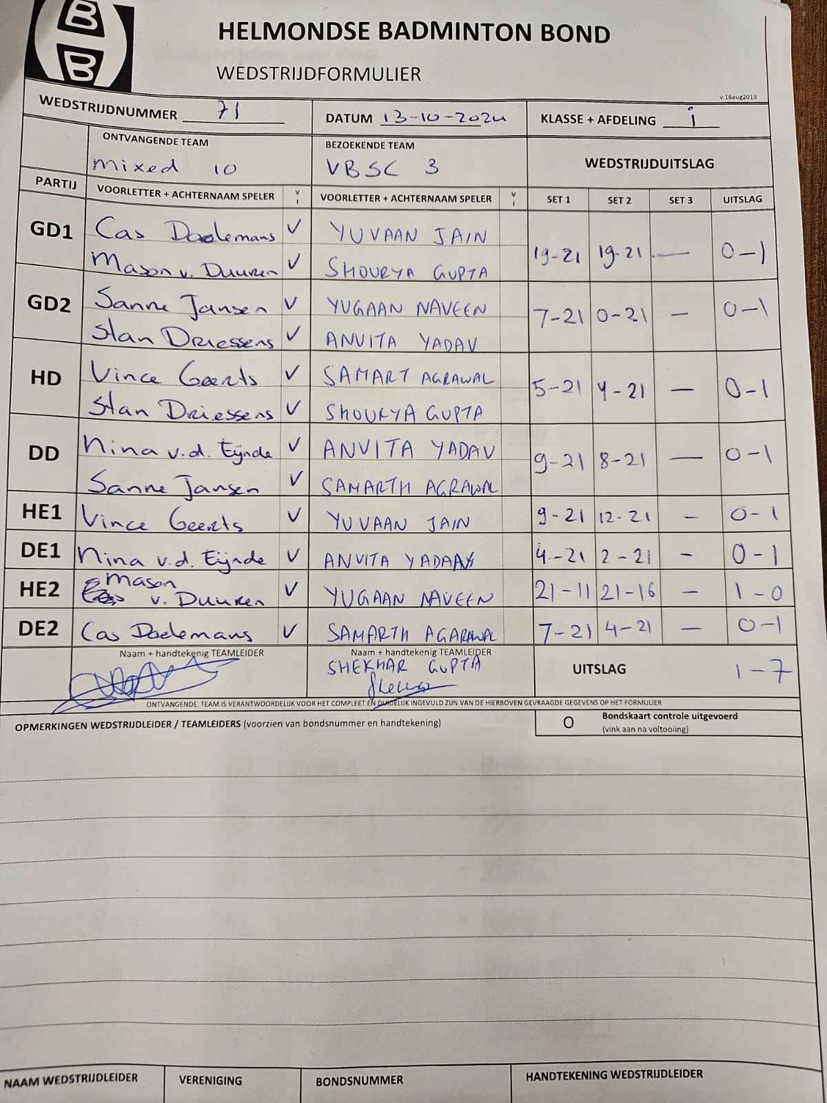 | 12:30 | zo. 13-10-2024 | Mixed 10 | - | VBSC 3 | 5 | 1 - 7 | ||