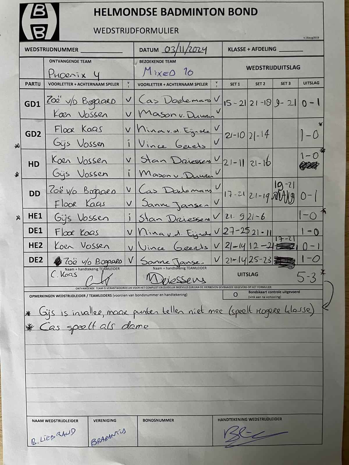 | 12:30 | zo. 03-11-2024 | Phoenix 4 | - | Mixed 10 | 12 | 2 - 6 | ||