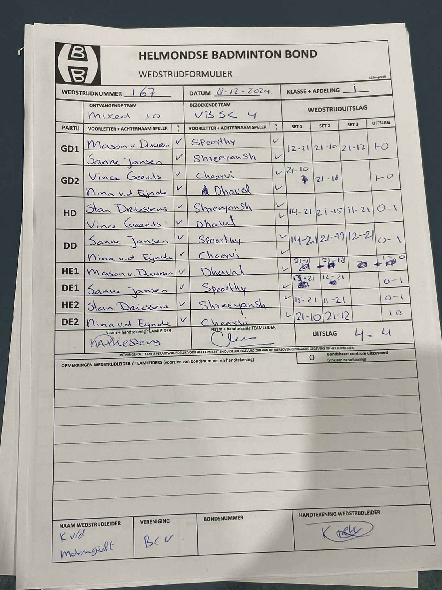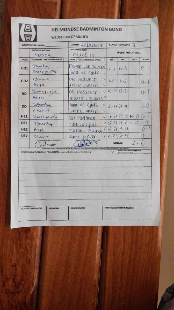 | 09:30 | zo. 24-11-2024 | VBSC 4 | - | Mixed 10 | 1 | 2 - 6 | ||