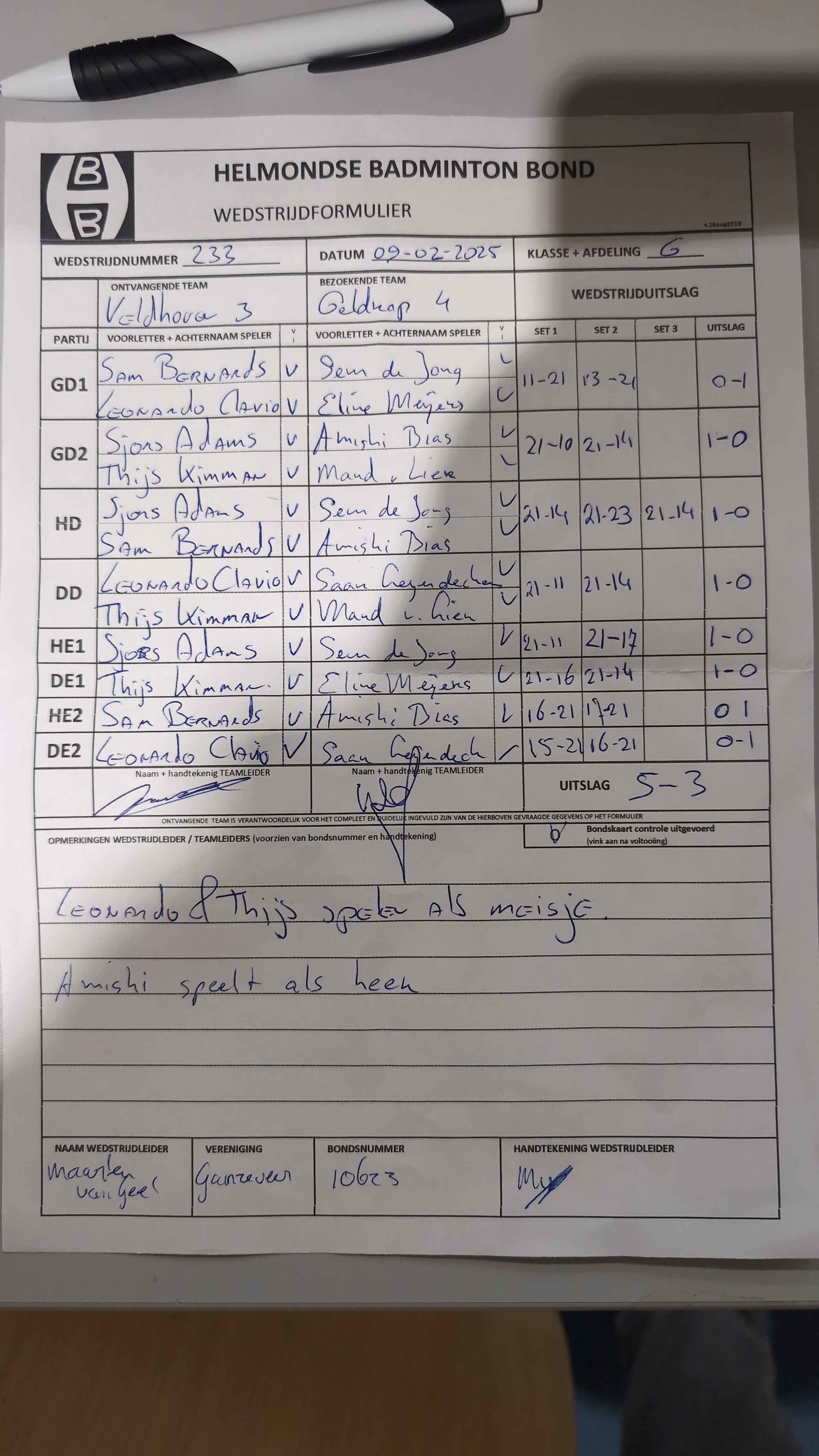 | 09:30 | zo. 09-02-2025 | Veldhoven 3 | - | Geldrop 4 | 5 | 5 - 3 | ||