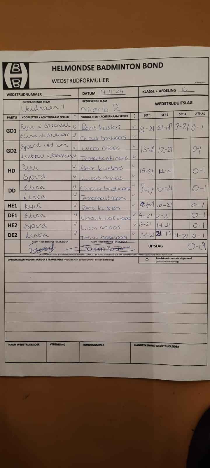 | 09:30 | zo. 17-11-2024 | Veldhoven 1 | - | Mierlo 2 | 3 | 0 - 8 | ||