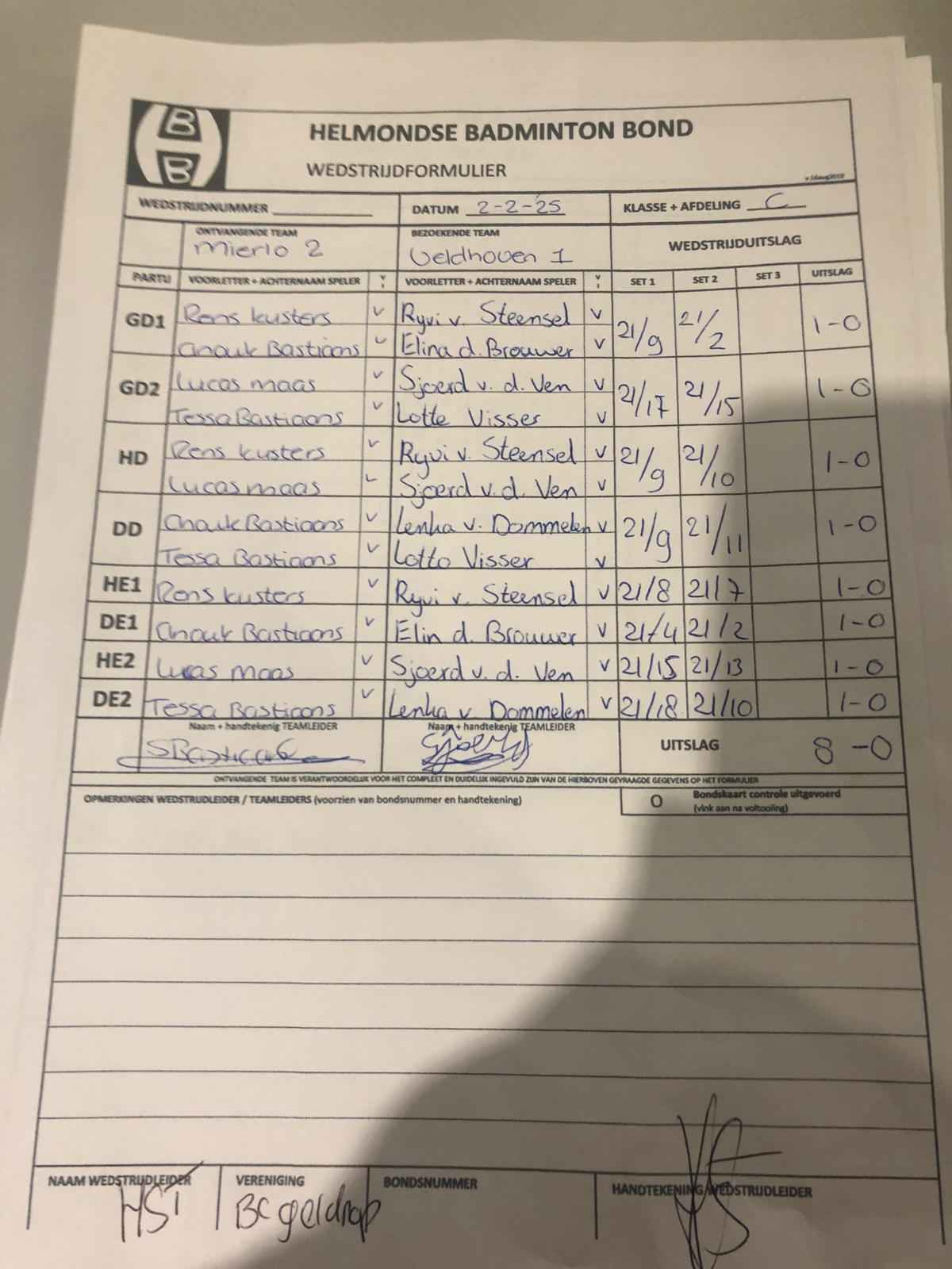| 12:30 | zo. 02-02-2025 | Mierlo 2 | - | Veldhoven 1 | 3 | 8 - 0 | ||