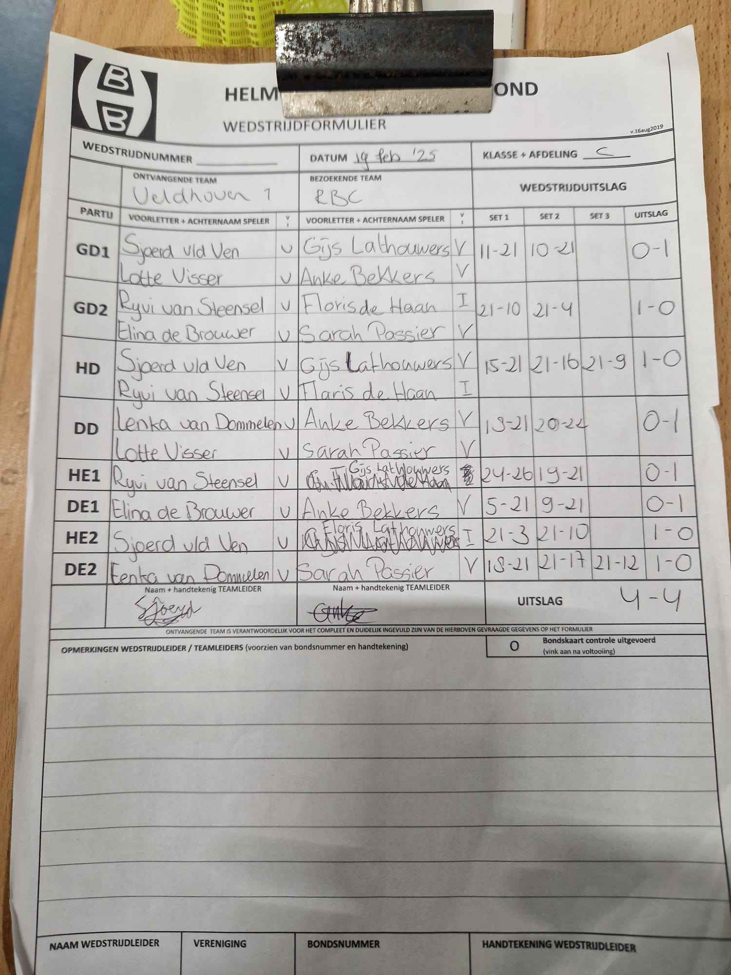 | 12:30 | zo. 09-02-2025 | Veldhoven 1 | - | RBC 1 | 11 | 4 - 4 | ||