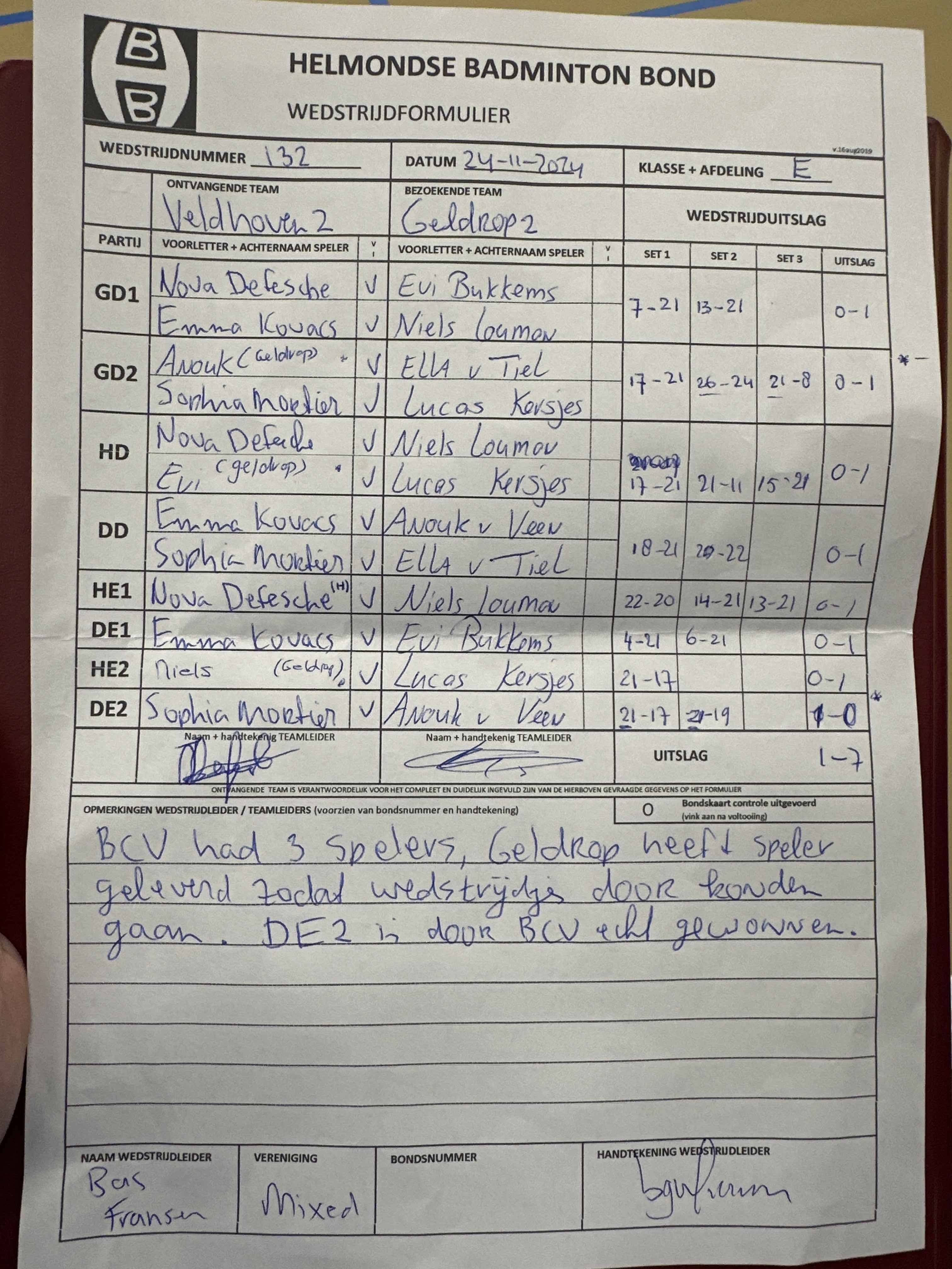 | 09:30 | zo. 03-11-2024 | Geldrop 2 | - | Veldhoven 2 | 11 | 5 - 3 | ||
