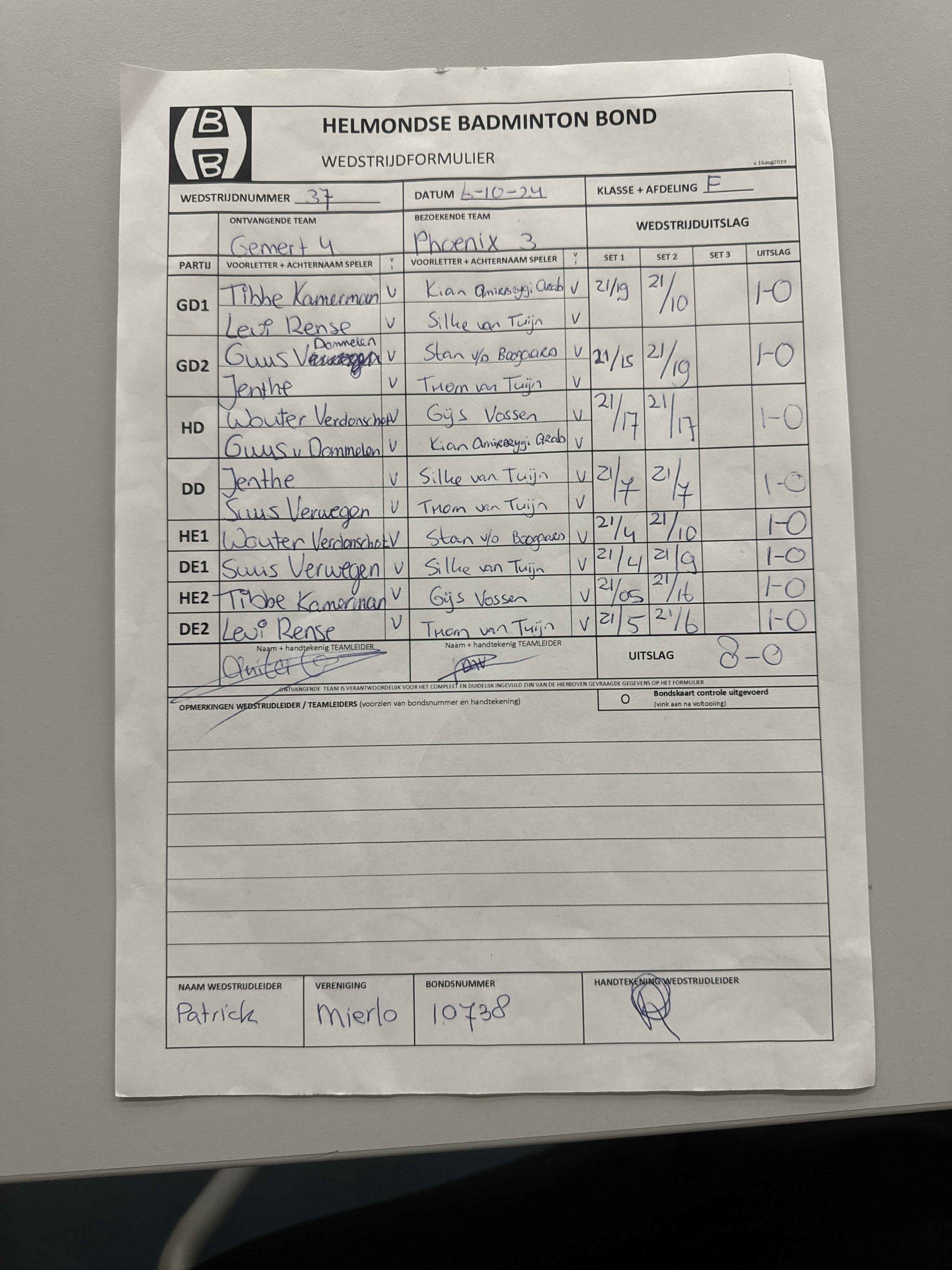 | 09:30 | zo. 06-10-2024 | Gemert 4 | - | Phoenix 3 | 4 | 8 - 0 | ||