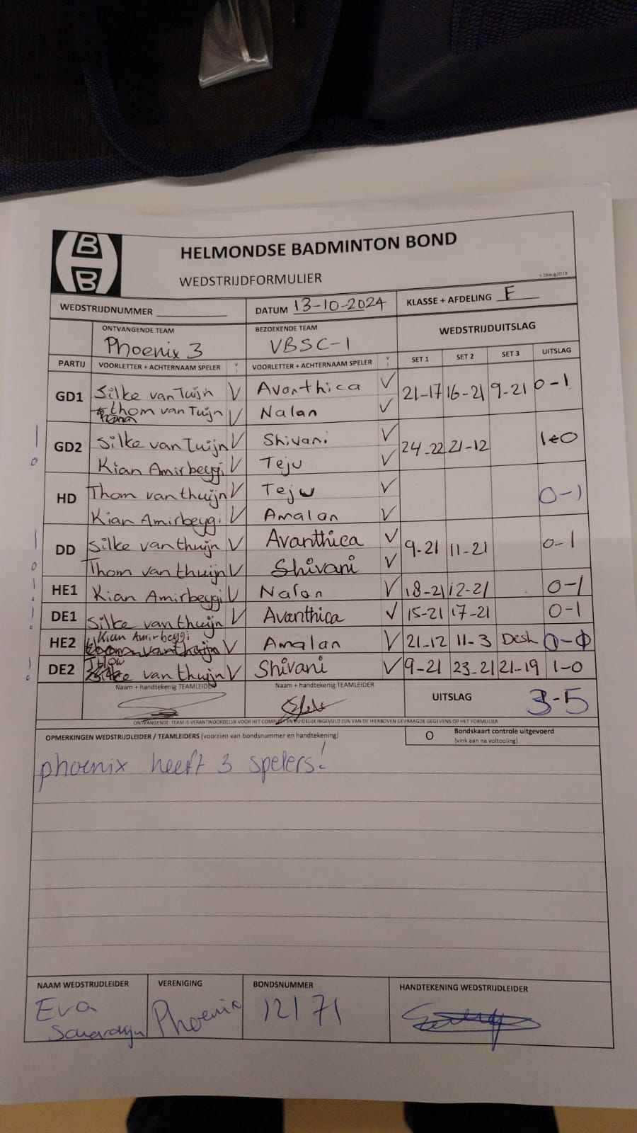 | 09:30 | zo. 13-10-2024 | Phoenix 3 | - | VBSC 1 | 10 | 2 - 6 | ||