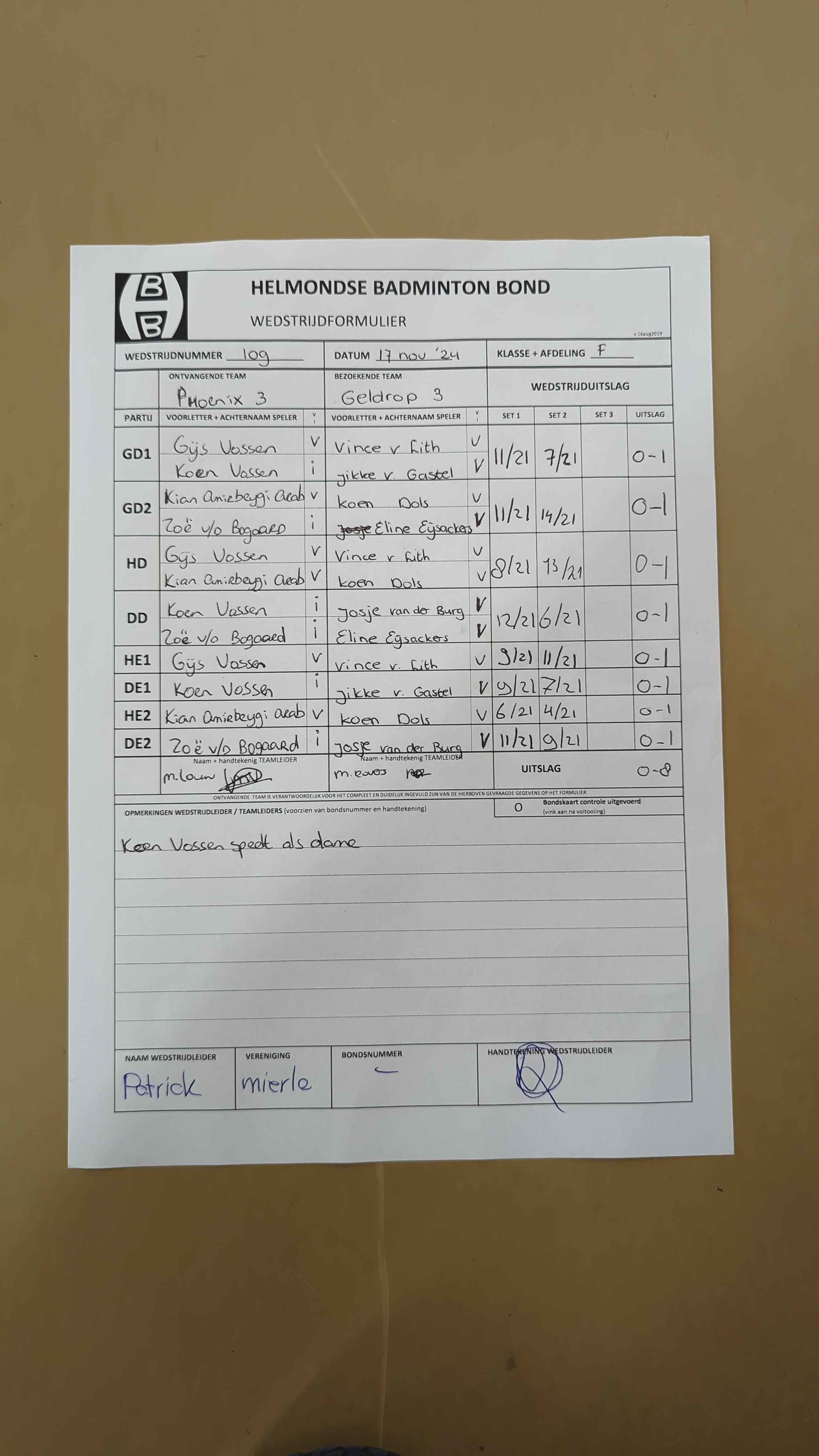| 12:30 | zo. 17-11-2024 | Phoenix 3 | - | Geldrop 3 | 1 | 0 - 8 | ||