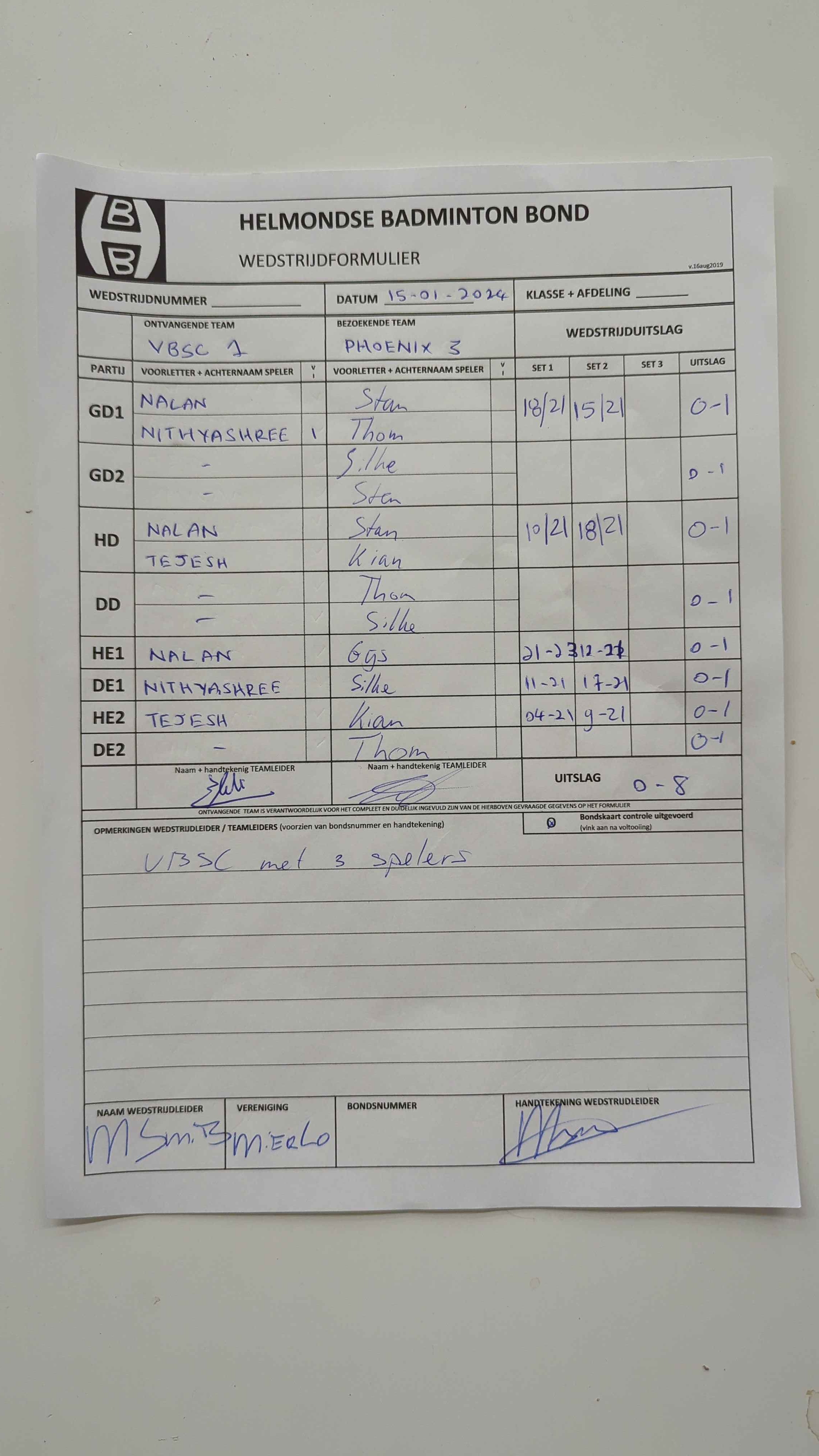 | 12:30 | zo. 15-12-2024 | VBSC 1 | - | Phoenix 3 | 5 | 0 - 8 | ||