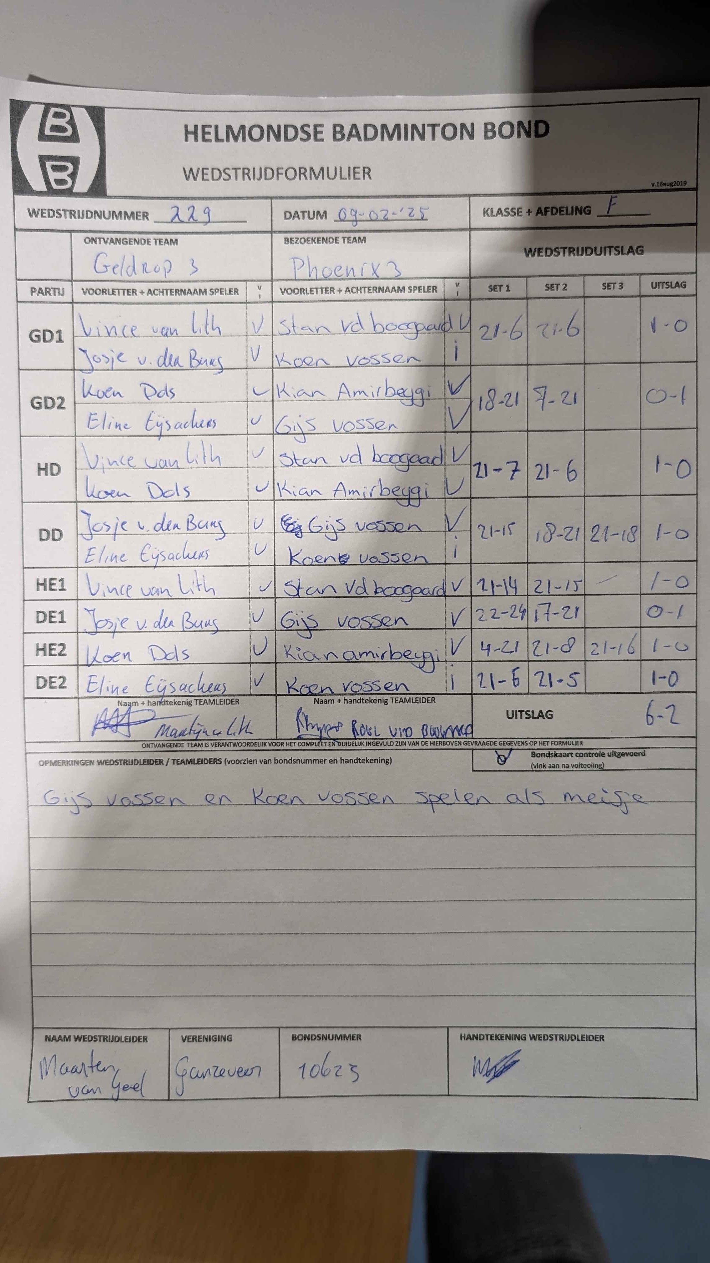 | 09:30 | zo. 09-02-2025 | Geldrop 3 | - | Phoenix 3 | 1 | 6 - 2 | ||