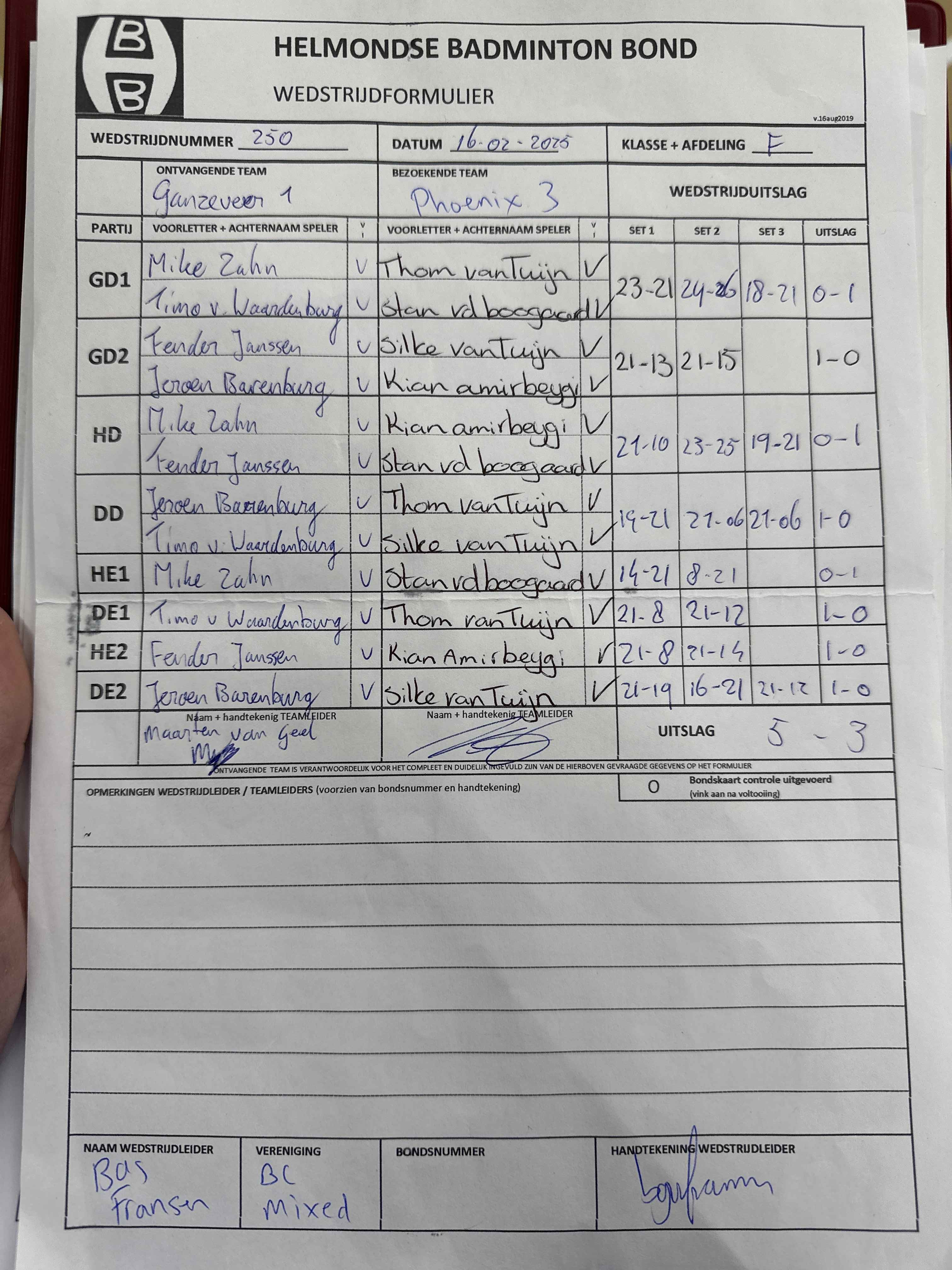 | 09:30 | zo. 16-02-2025 | Ganzeveer 1 | - | Phoenix 3 | 2 | 5 - 3 | ||