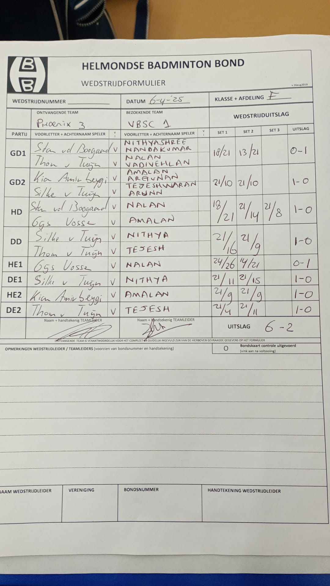 | 09:30 | zo. 06-04-2025 | Phoenix 3 | - | VBSC 1 | 3 | 6 - 2 |