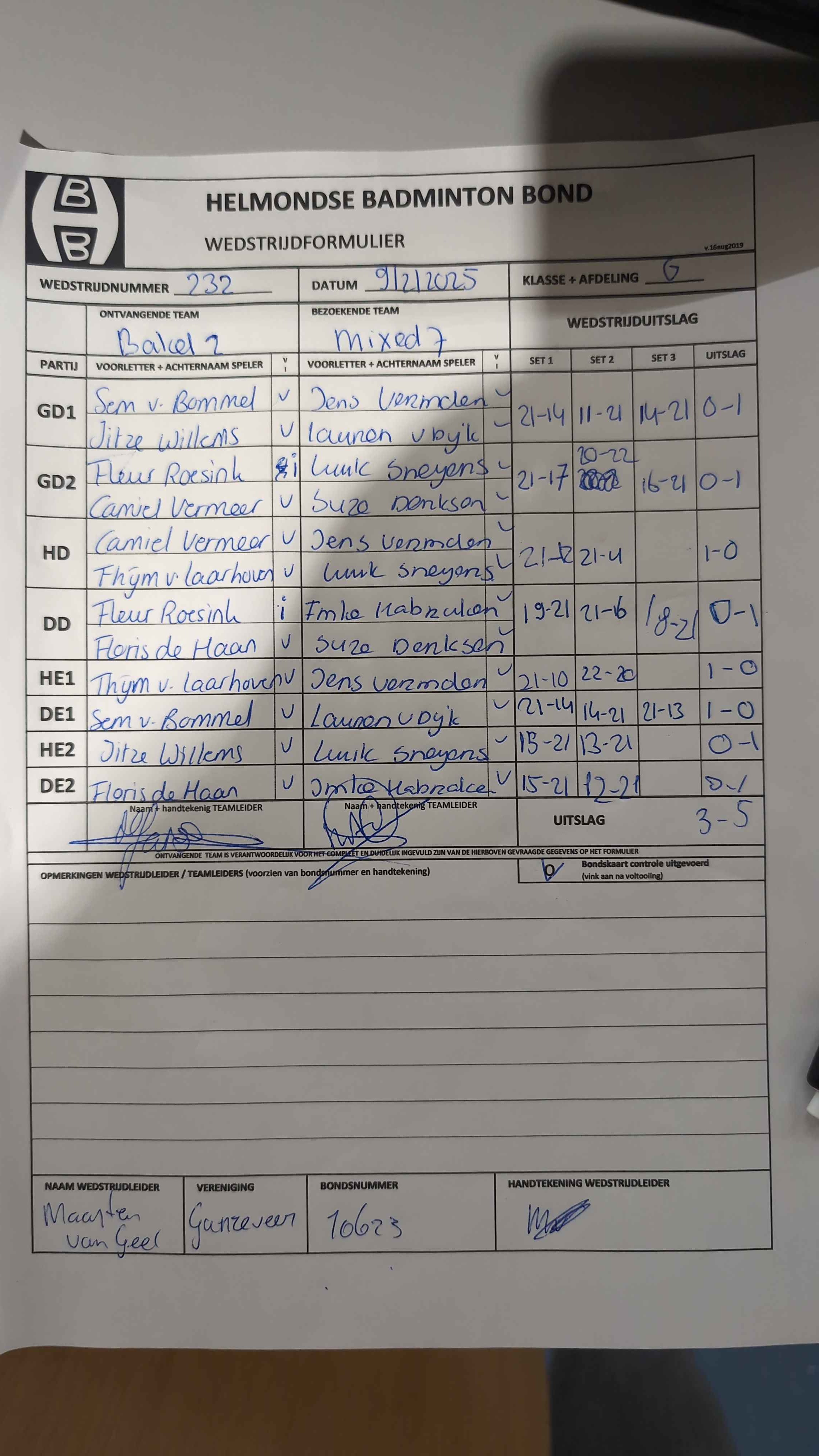 Wedstrijdnummer:
