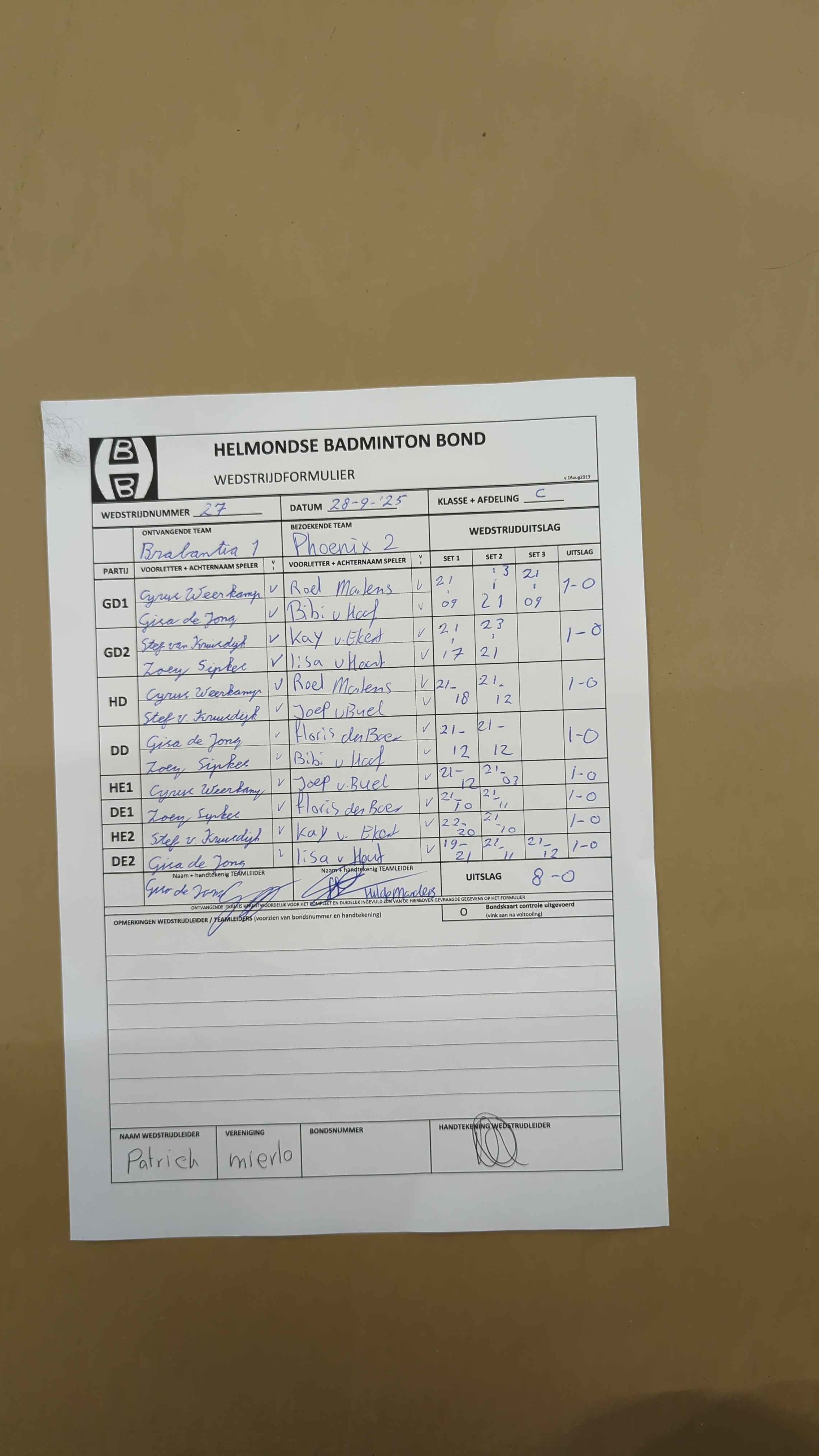 | 09:30 | zo. 28-09-2025 | Brabantia 1 | - | Phoenix 2 | 3 | 8 - 0 | ||