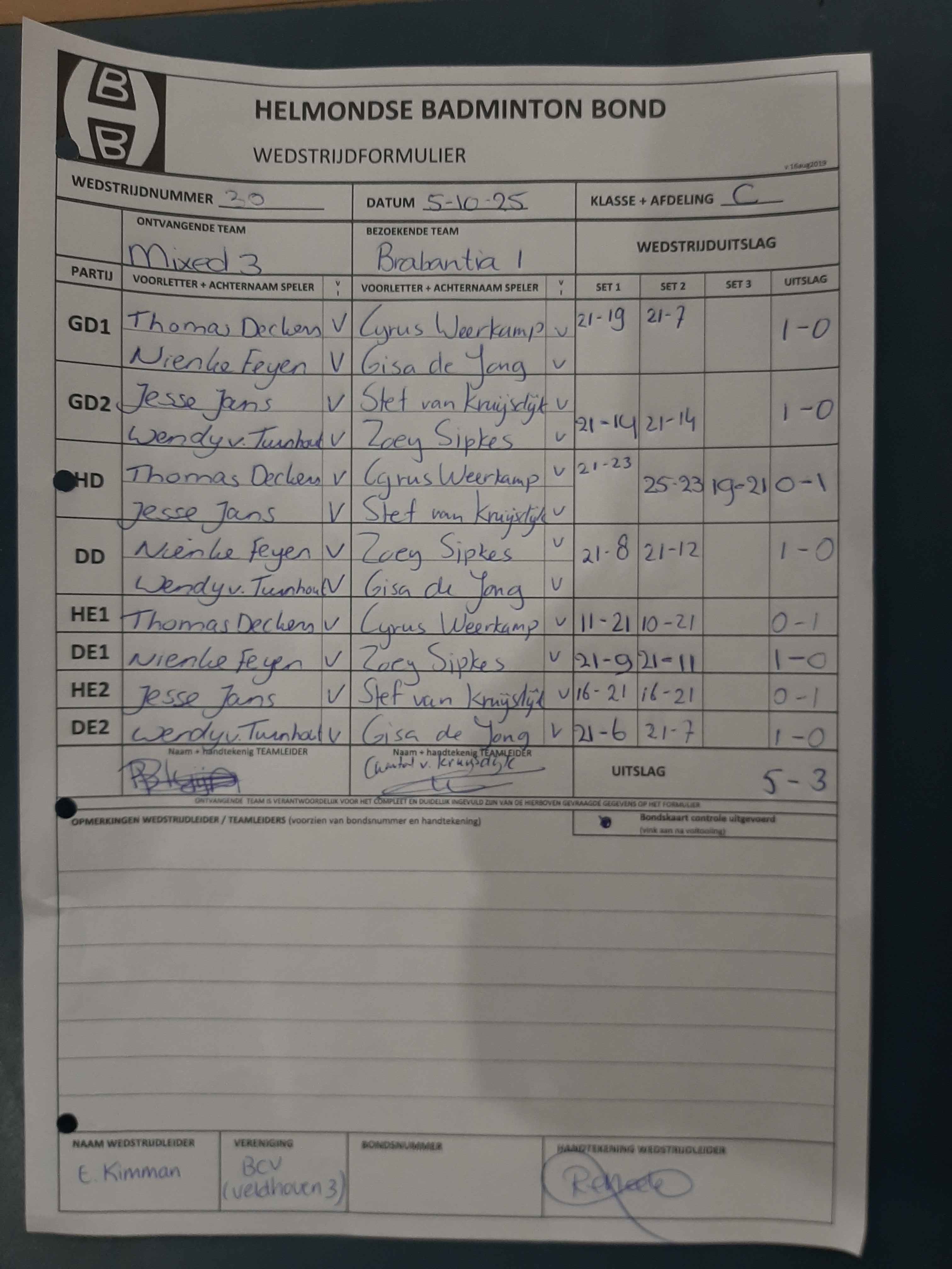 | 09:30 | zo. 05-10-2025 | Mixed 3 | - | Brabantia 1 | 3 | 5 - 3 | ||