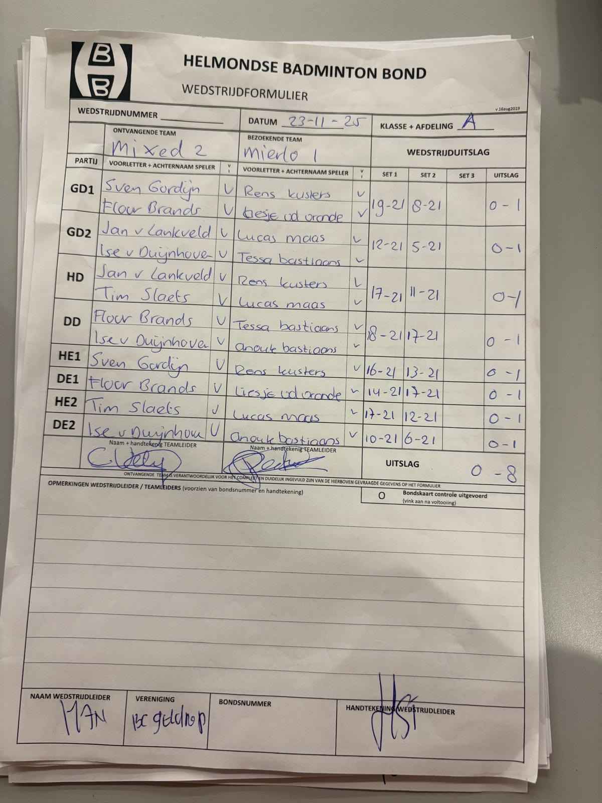 | 09:30 | zo. 30-11-2025 | Mixed 2 | - | Mierlo 1 | 4 | - | ||