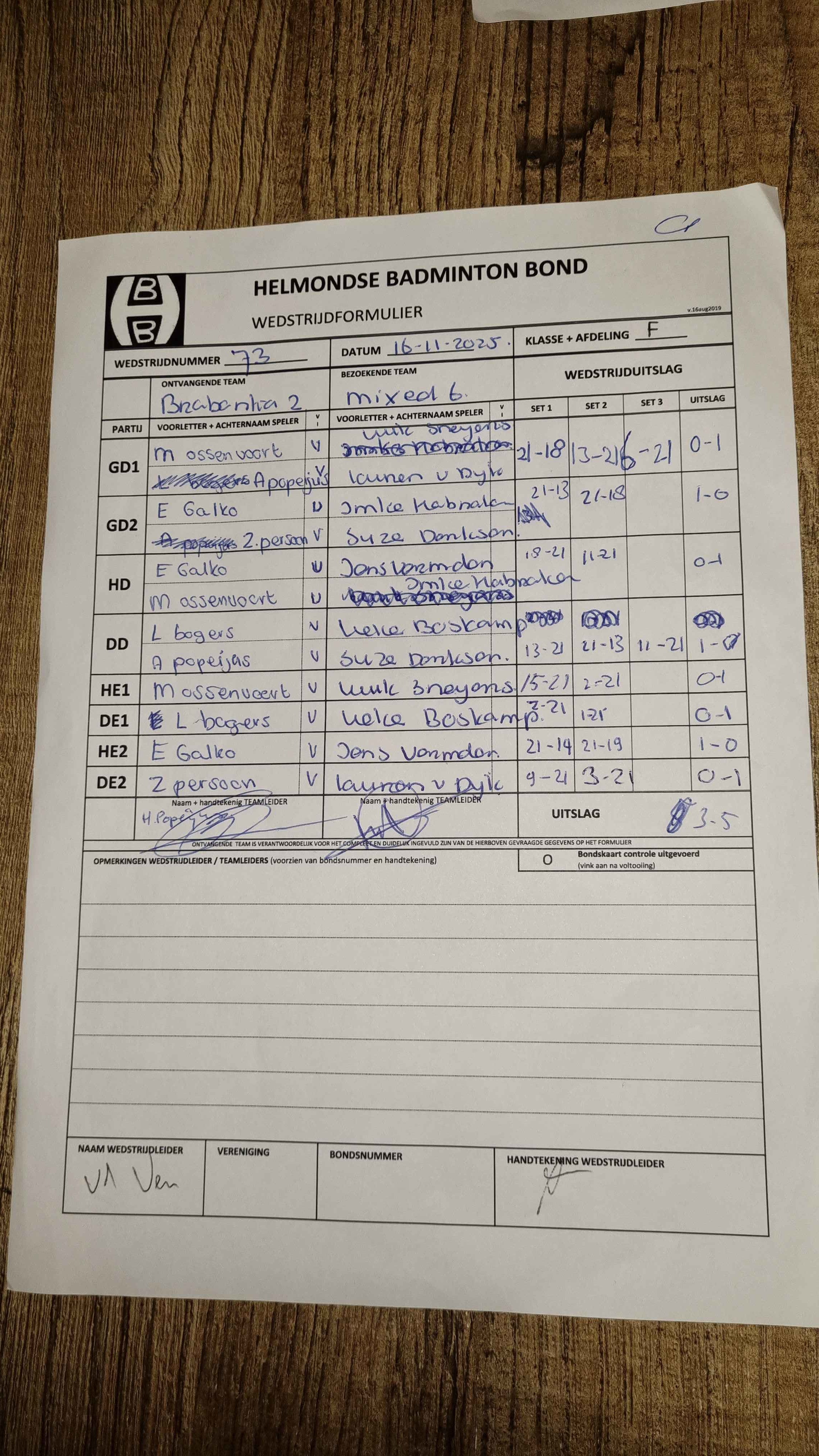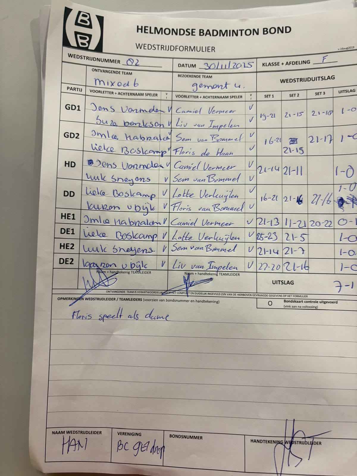 | 09:30 | zo. 05-10-2025 | Mixed 6 | - | Geldrop 1 | 13 | 3 - 5 | ||
