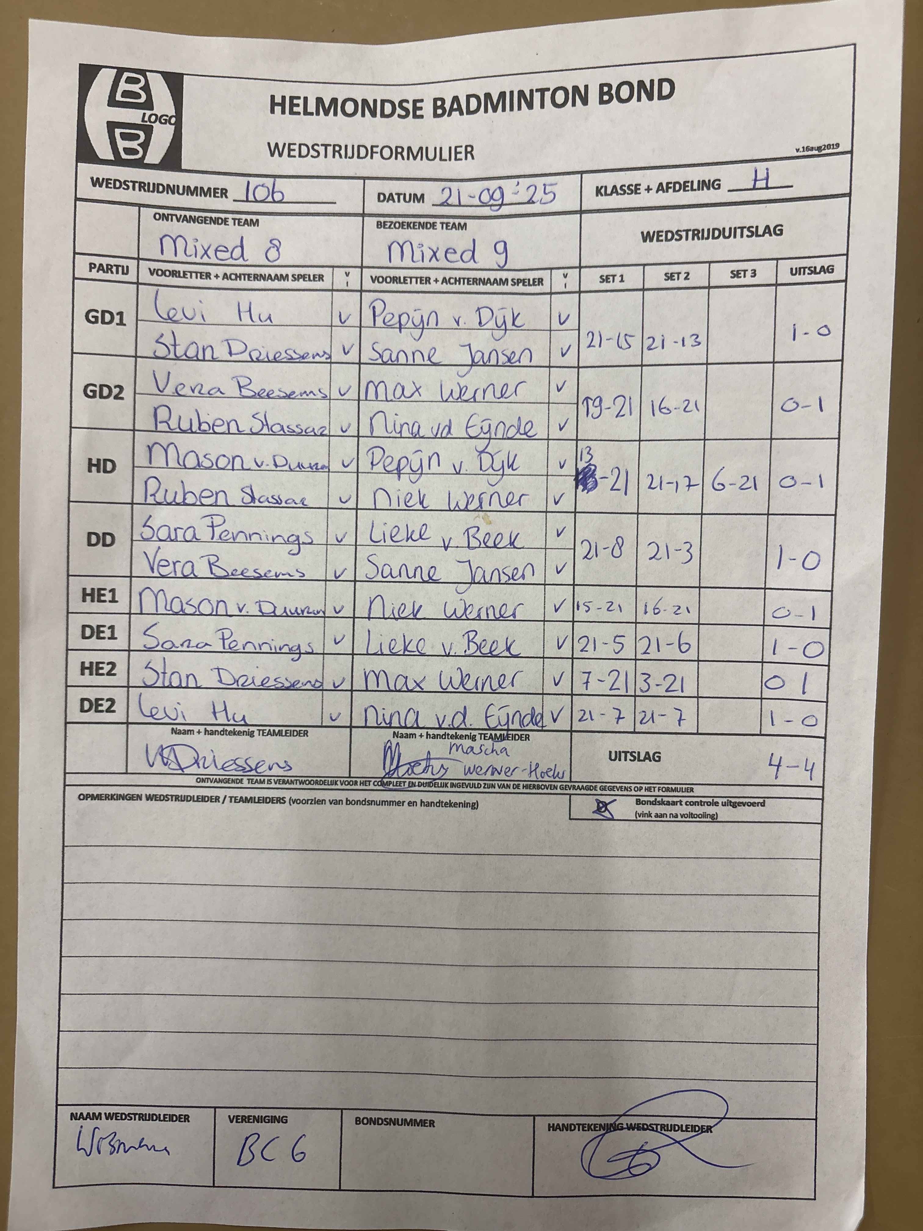 | 09:30 | zo. 21-09-2025 | Mixed 8 | - | Mixed 9 | 5 | 4 - 4 | ||