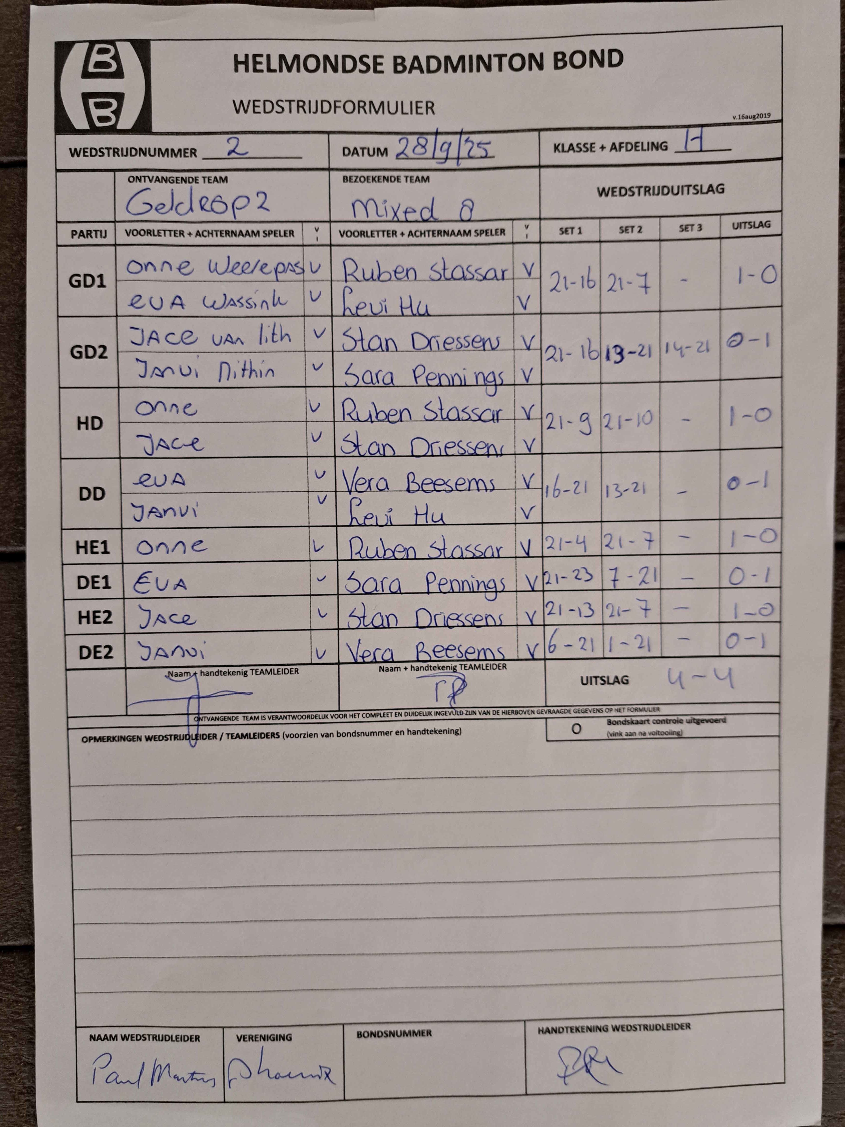 | 12:30 | zo. 28-09-2025 | Geldrop 2 | - | Mixed 8 | 12 | 4 - 4 | ||