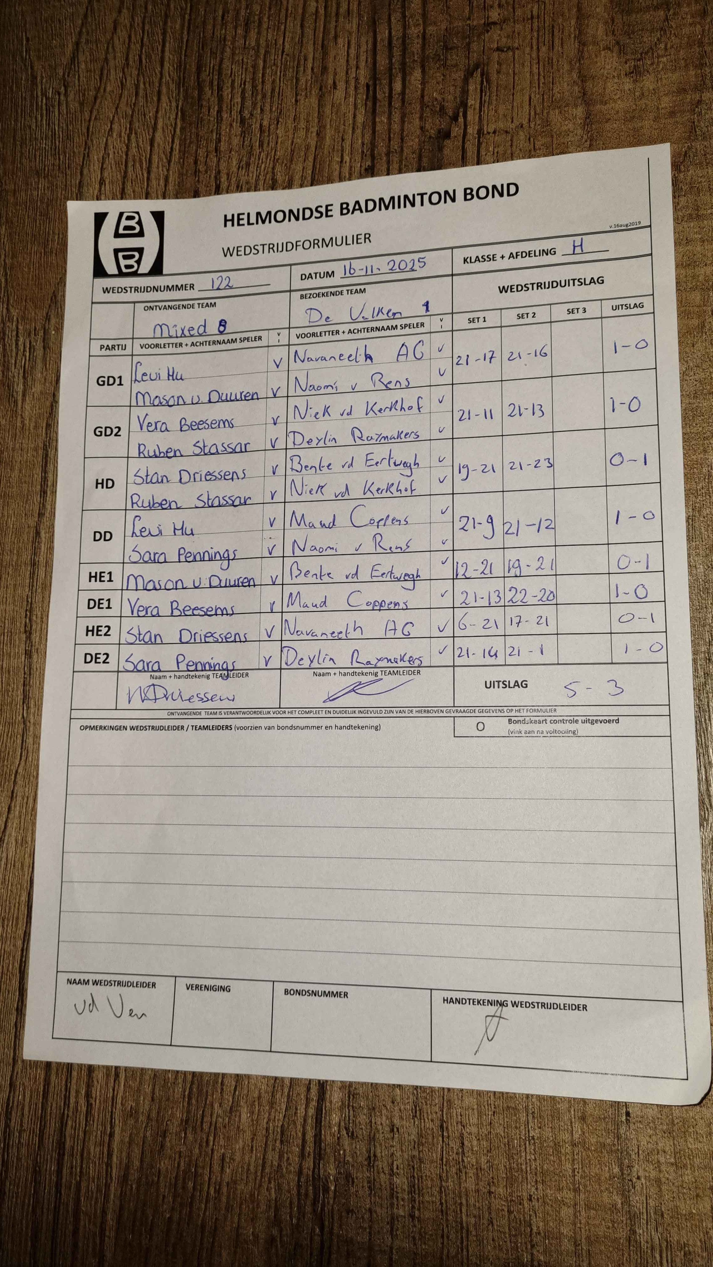 | 09:30 | zo. 16-11-2025 | Mixed 8 | - | De Valken 1 | 15 | - | ||