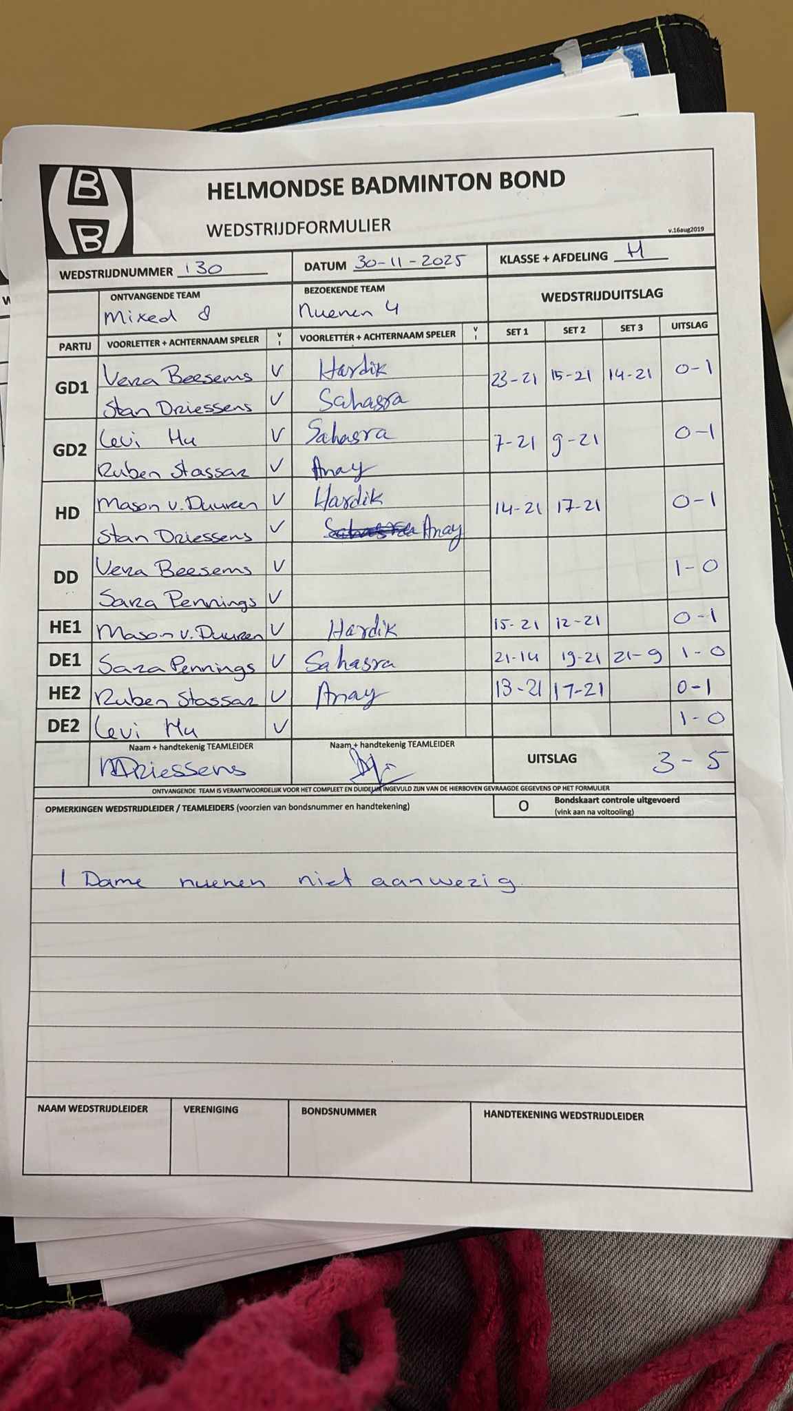 | 09:30 | zo. 30-11-2025 | Mixed 8 | - | Nuenen 4 | 10 | - | ||