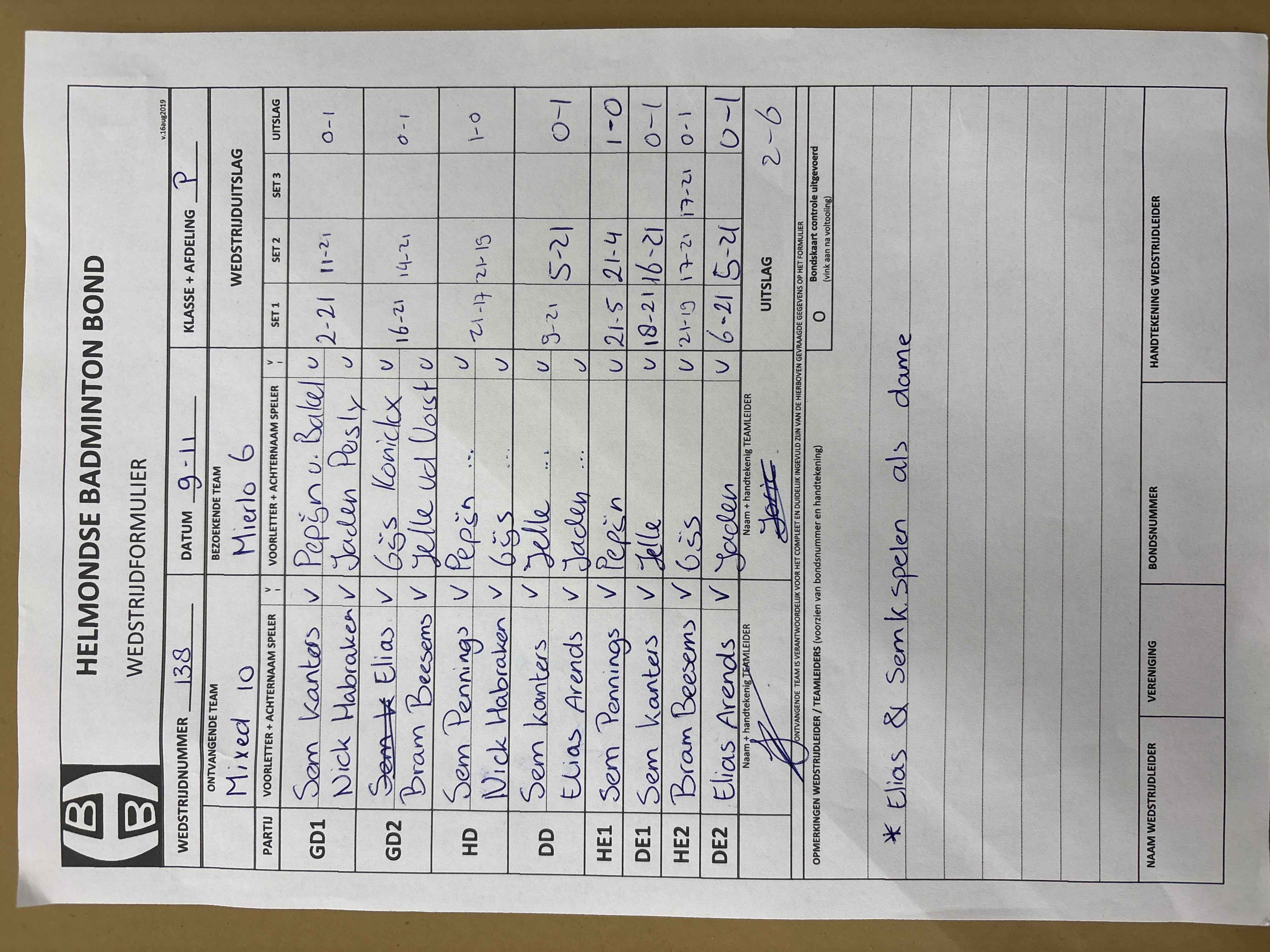 | 09:30 | zo. 09-11-2025 | Mixed 10 | - | Mierlo 6 | 5 | - | ||