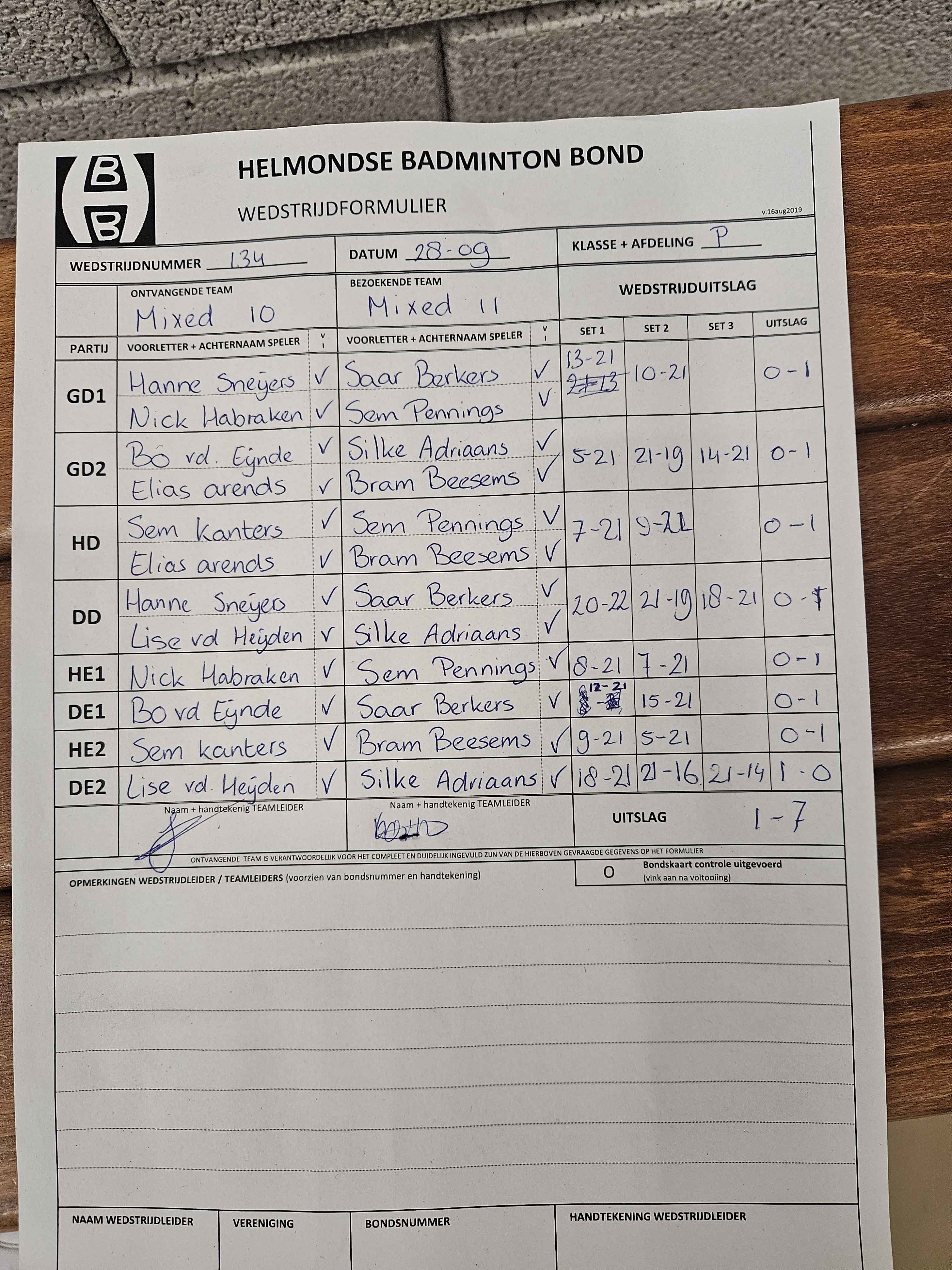 | 12:30 | zo. 28-09-2025 | Mixed 10 | - | Mixed 11 | 4 | 1 - 7 | ||