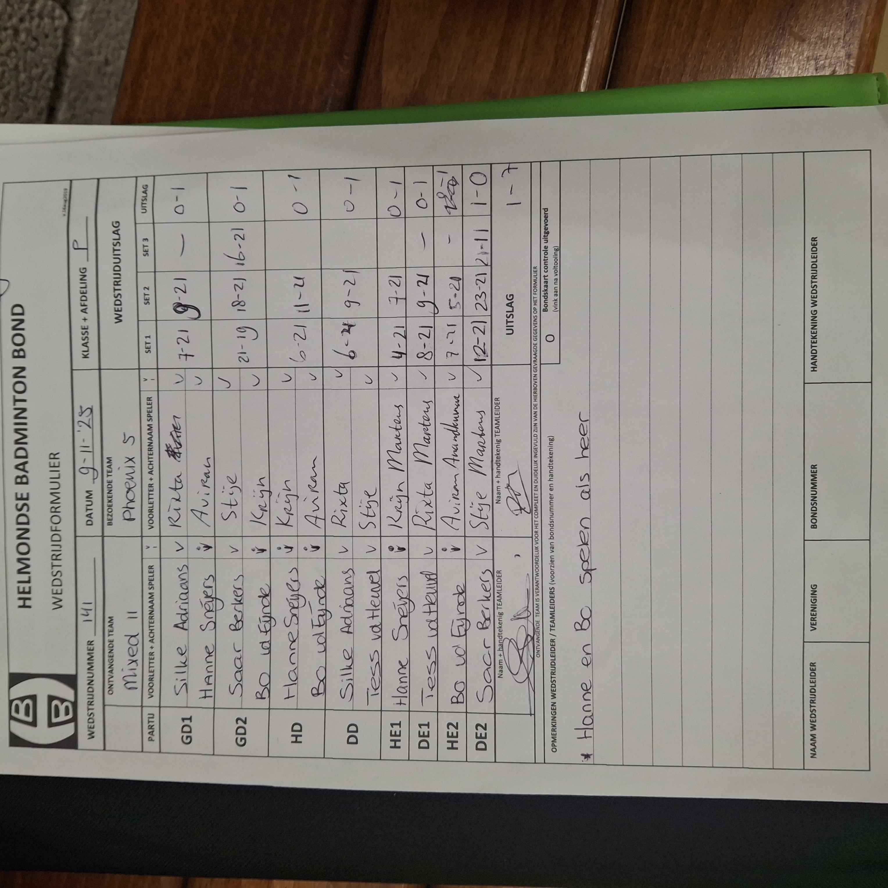 | 09:30 | zo. 09-11-2025 | Mixed 11 | - | Phoenix 5 | 11 | - | ||